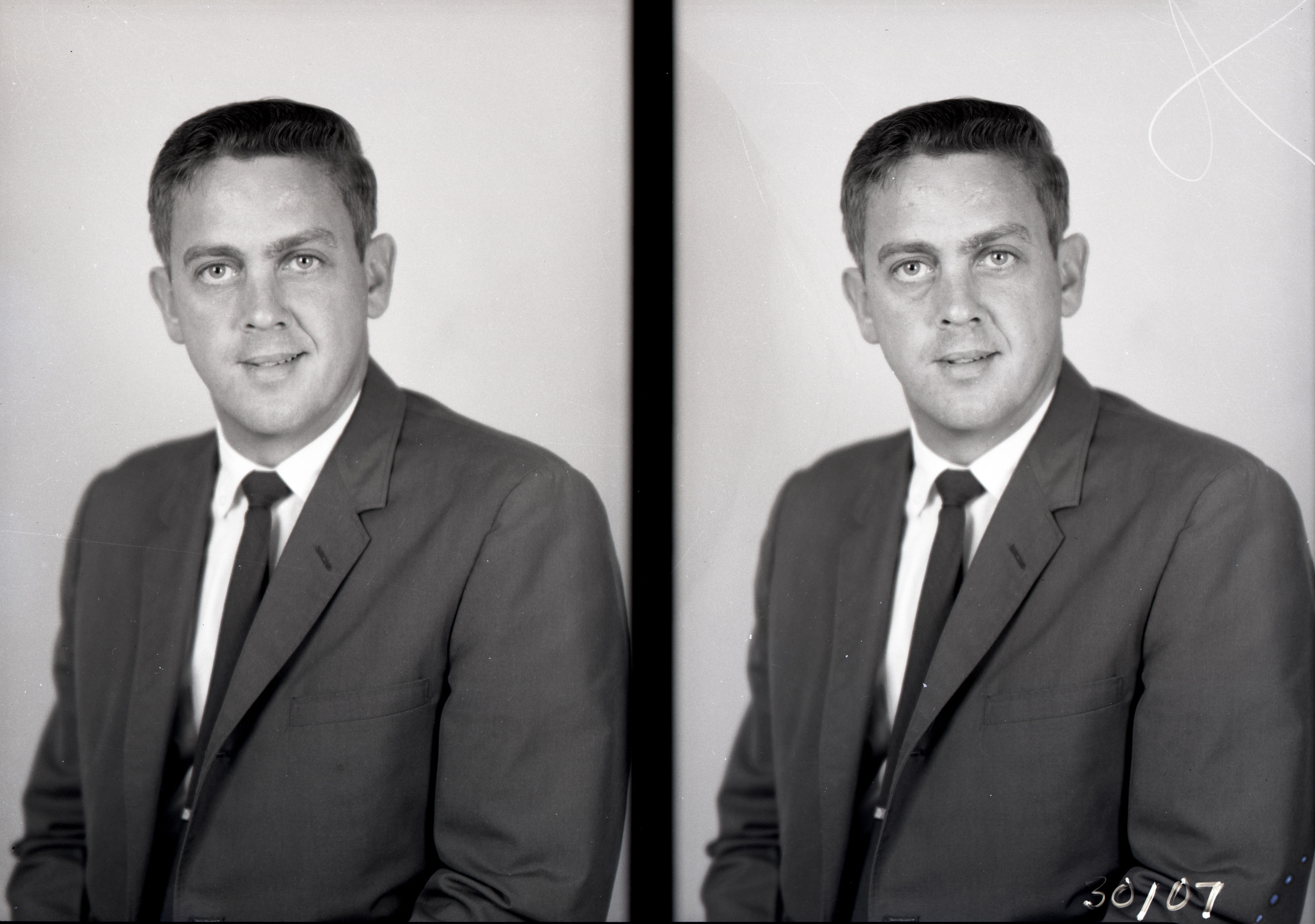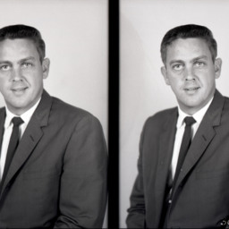 Photo of two separate portrait photographs of the same unidentified man wearing a suit and tie.
