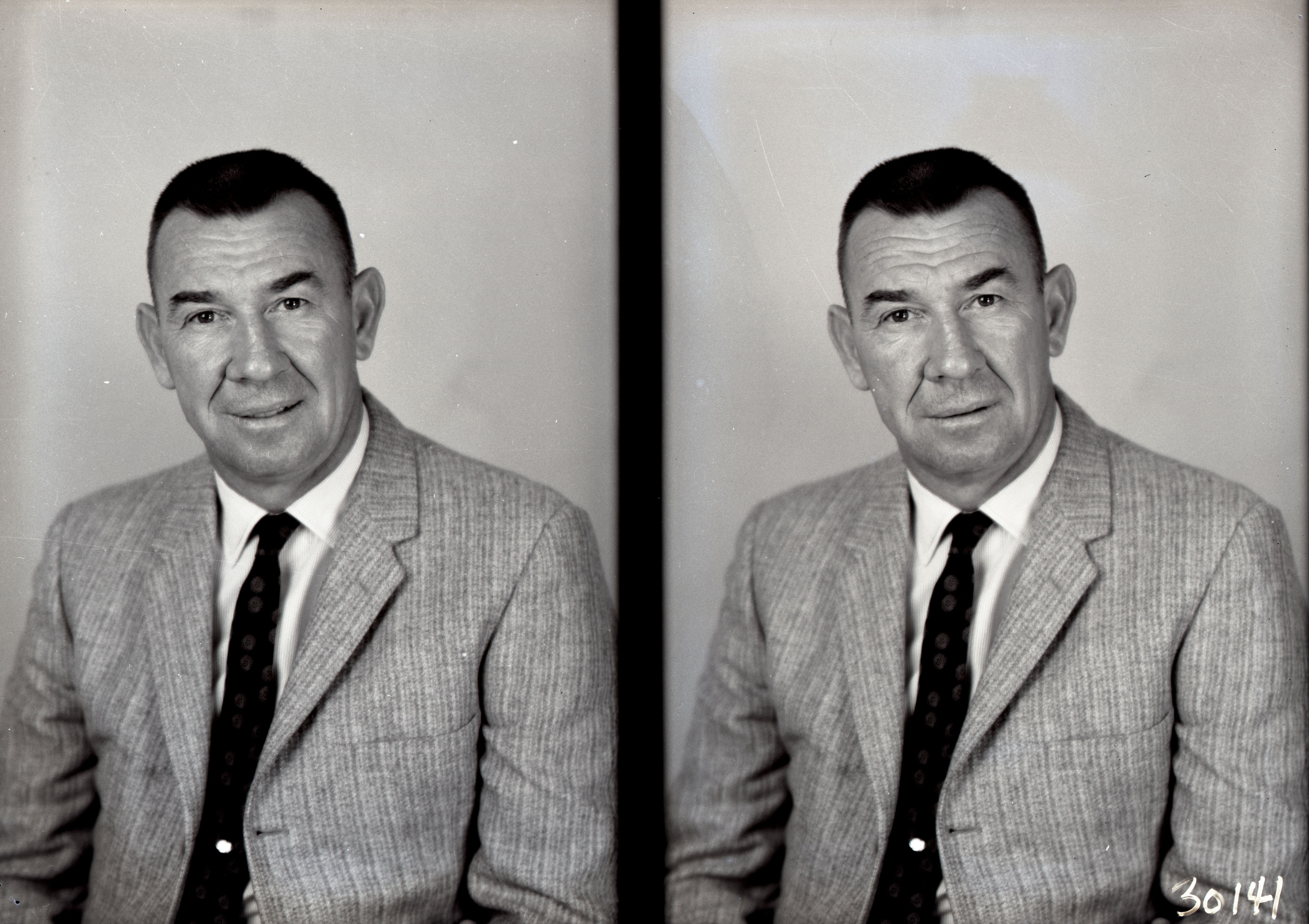 Photo of two separate portrait photographs of Robert D. "Buddy" Hawkins, Sr. wearing a suit and tie.