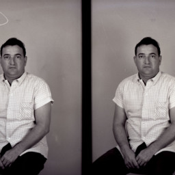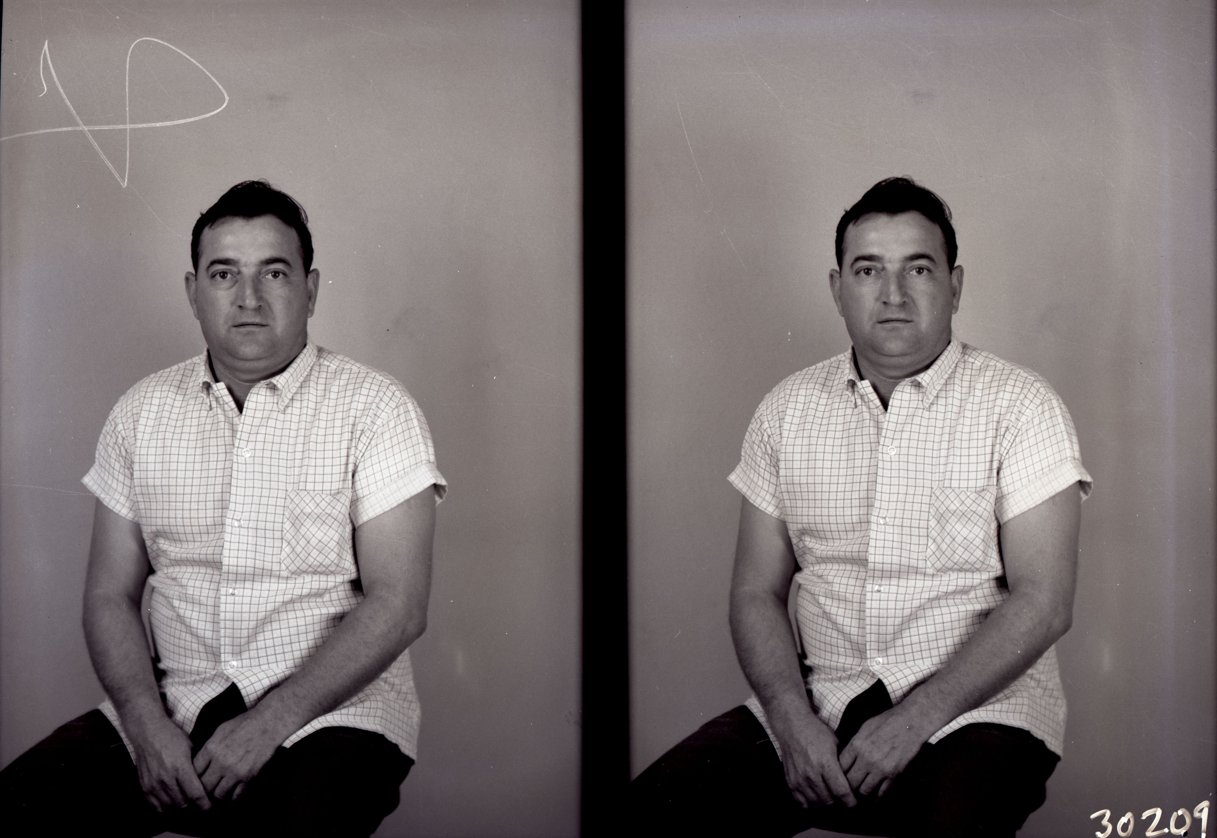 Photo of two separate photographs of the same unidentified man in a short-sleeved shirt.