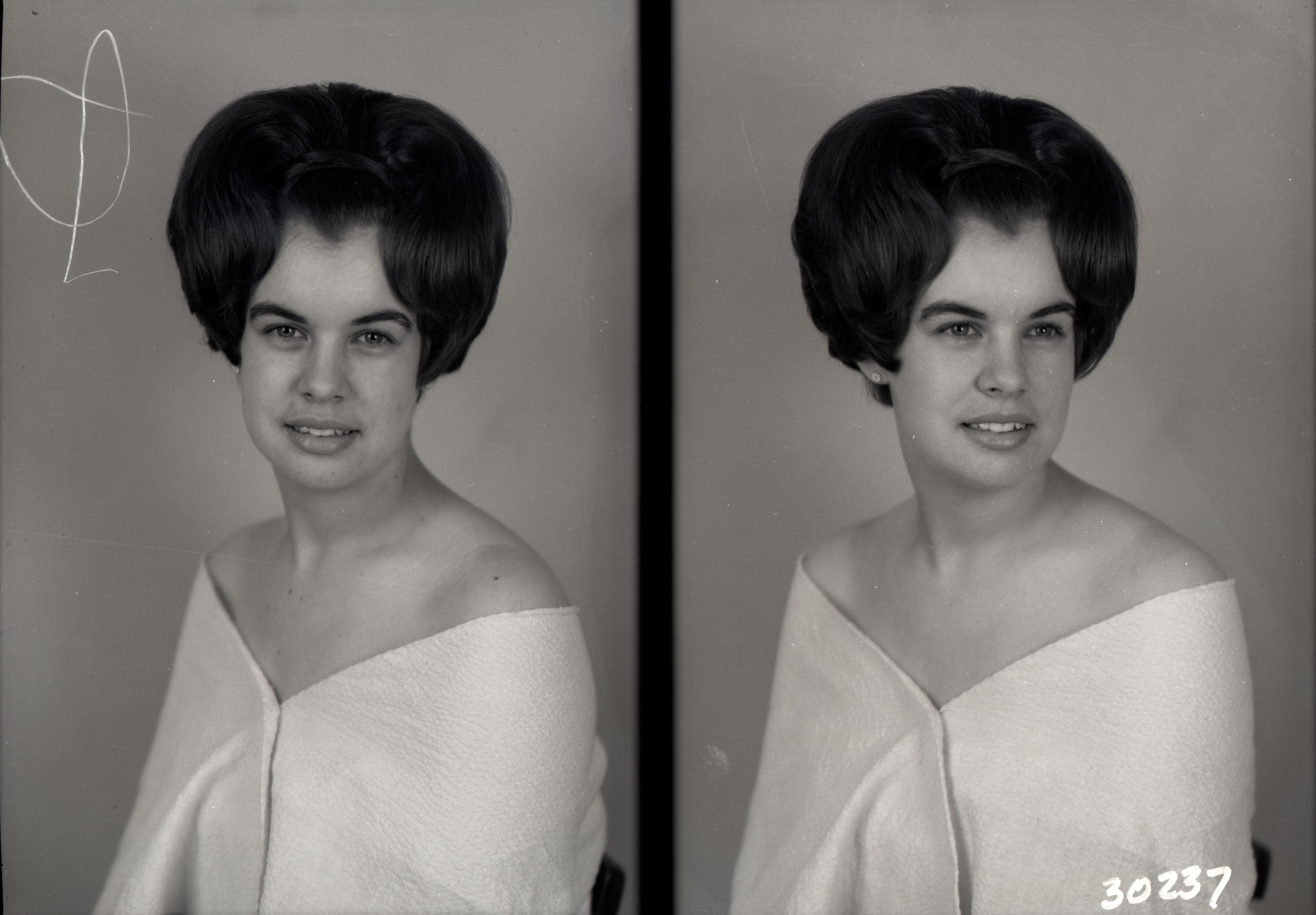 Photo of two separate portrait photographs of Delores L. (Seal) Tisinger of Woodstock.