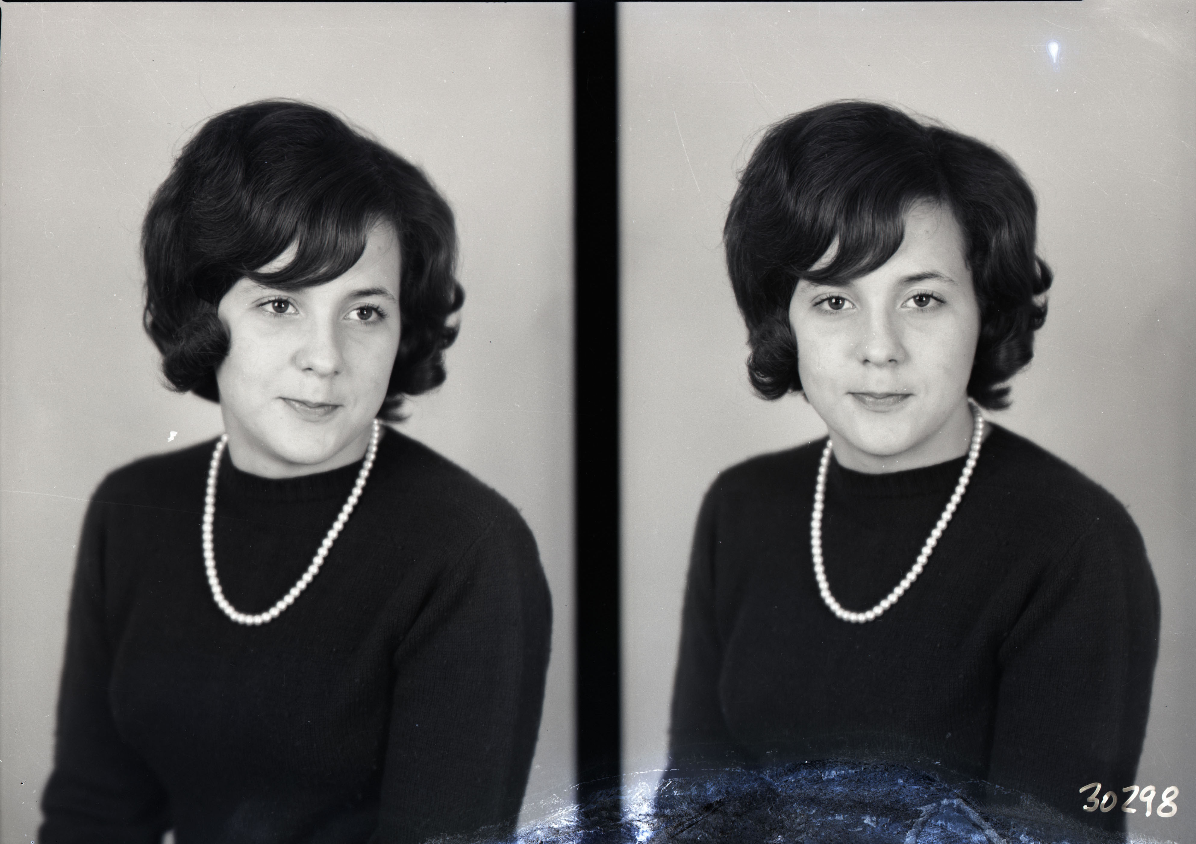 Photo of two separate portrait photographs of Jan E. (Hutchinson) Lambert as a young woman.