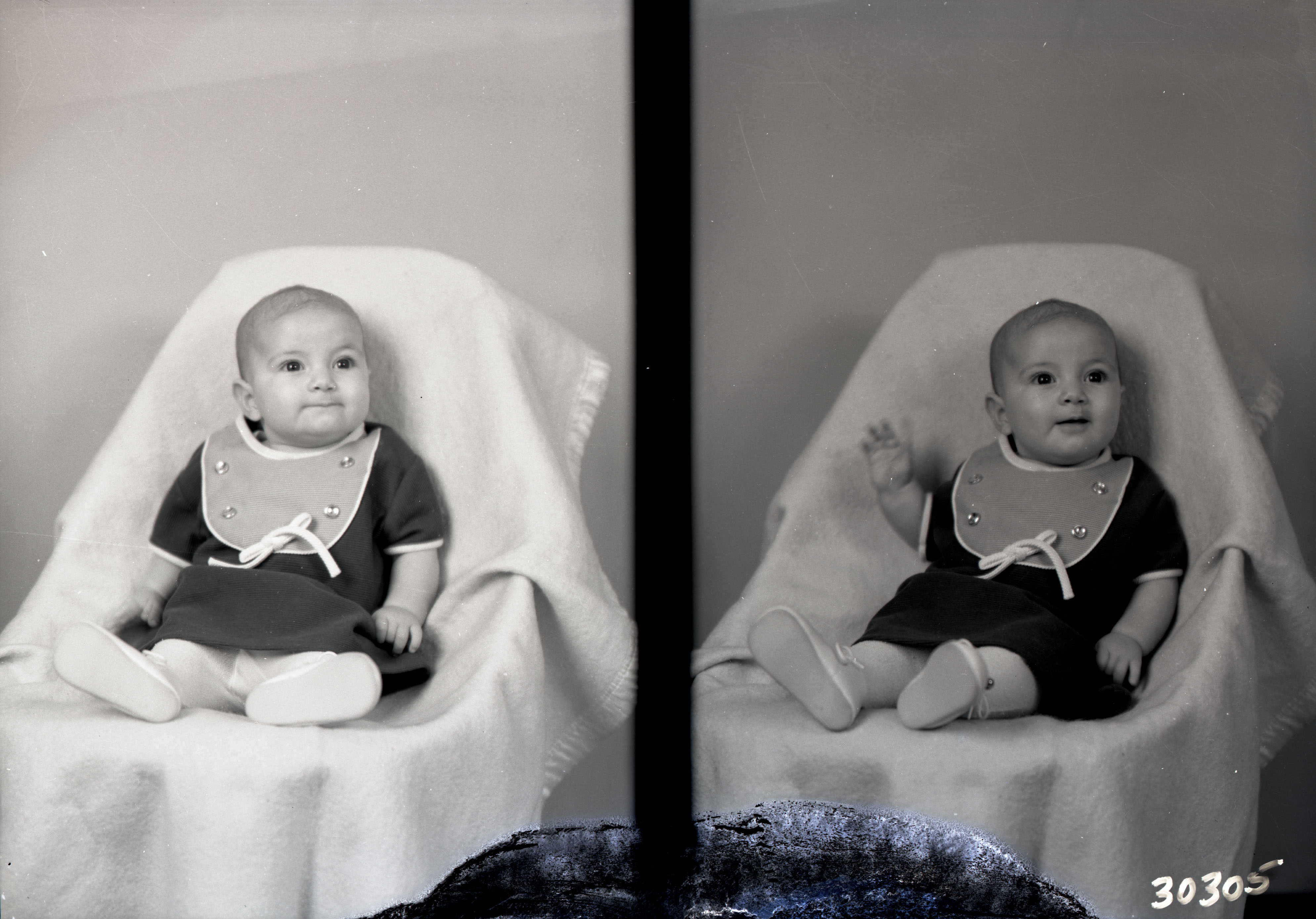 Photo of two separate photographs of the same unidentified baby.
