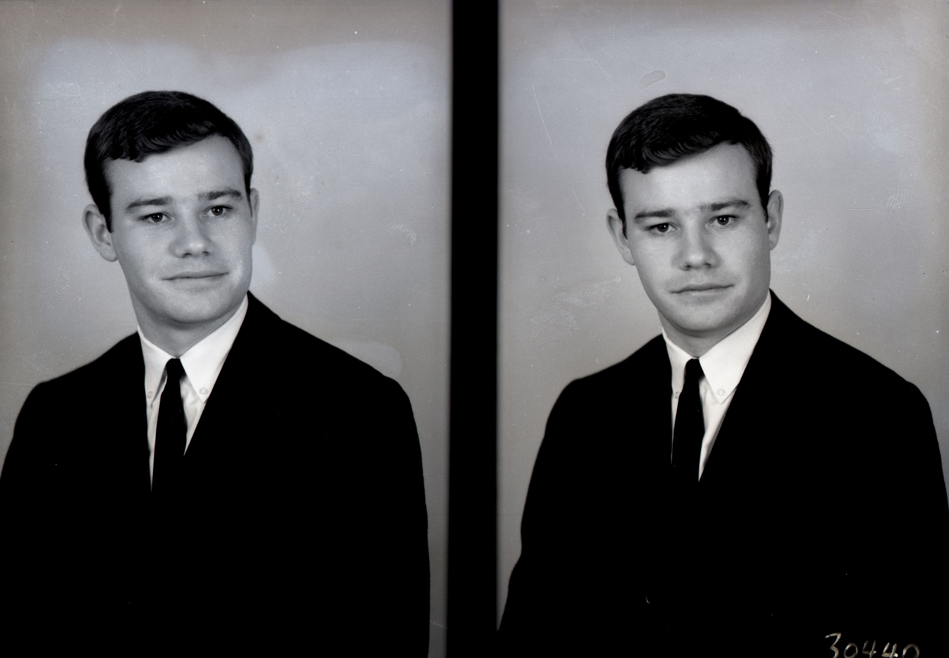 Photo of two separate portrait photographs of Wayne Davis Jones as a young man.