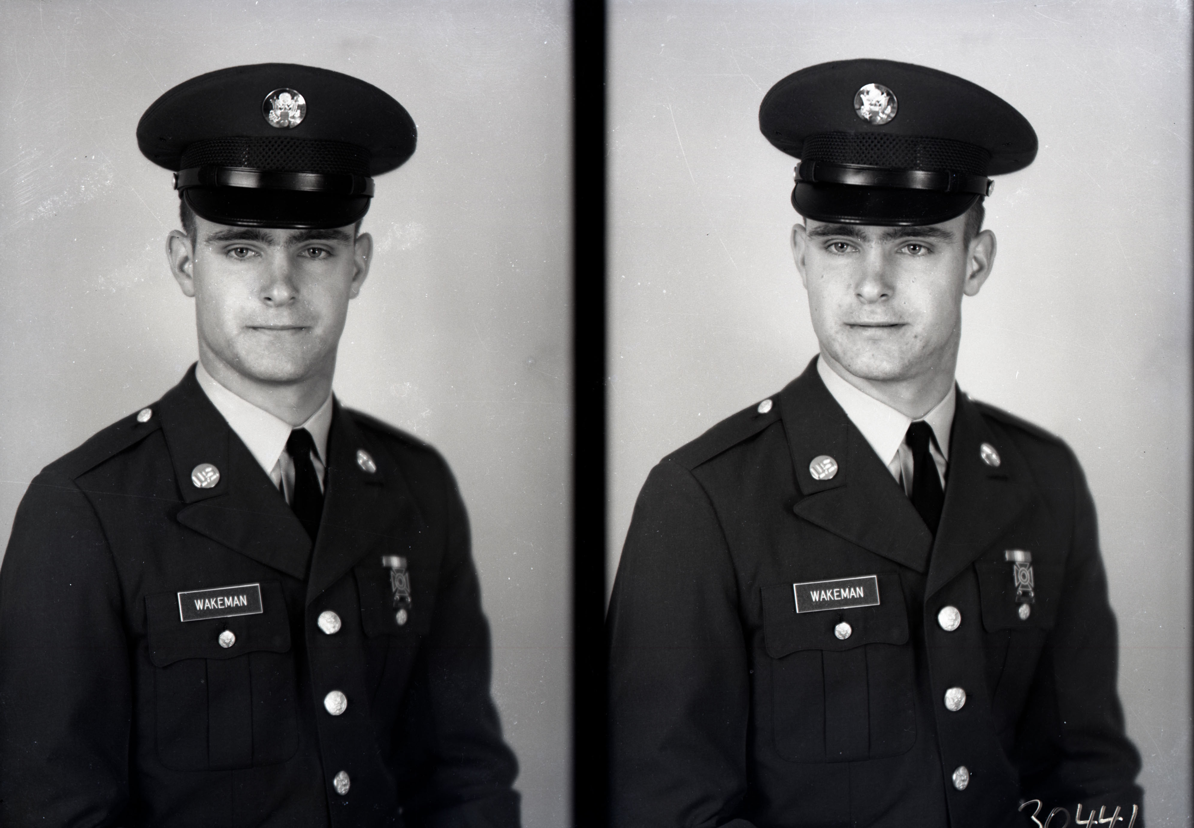 Photo of two separate portrait photographs of Gary Joe Wakeman in his U.S. Army uniform.