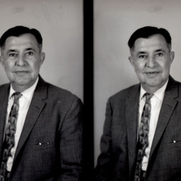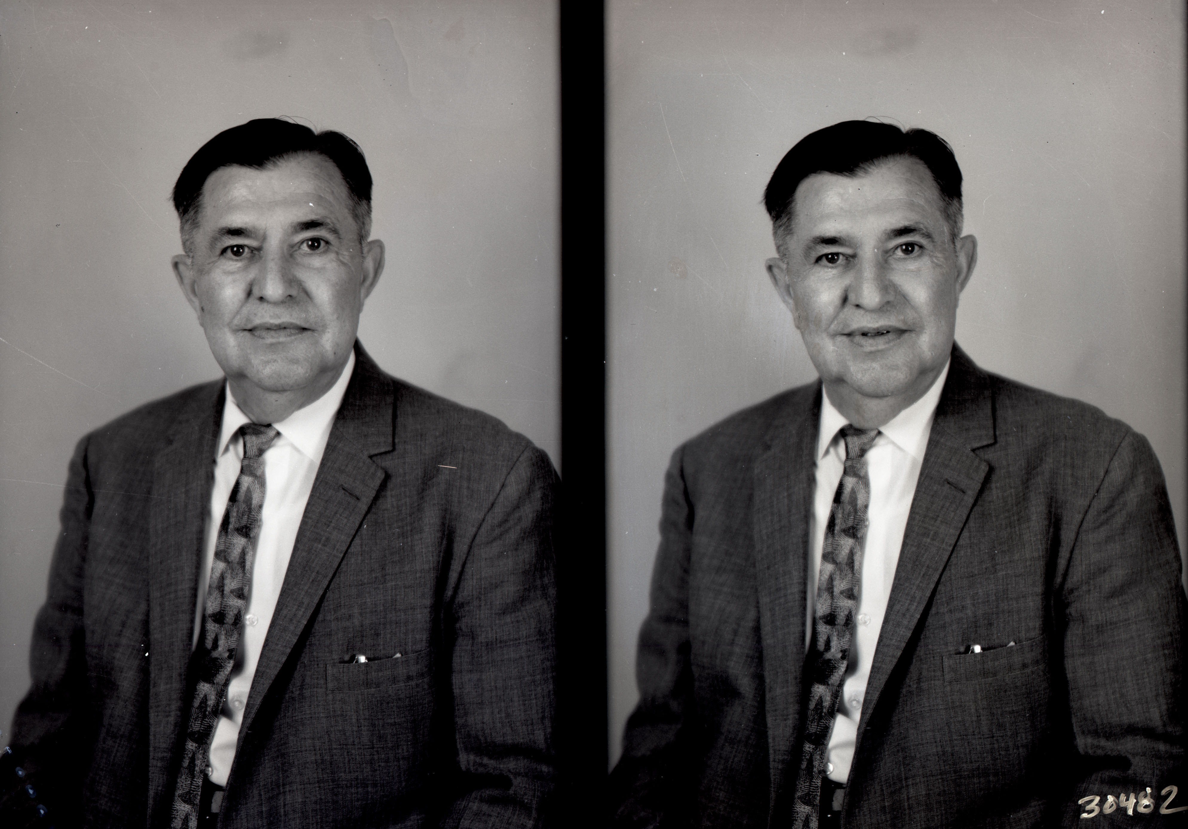 Photo of two separate portrait photographs of the same unidentified man wearing a suit and tie.