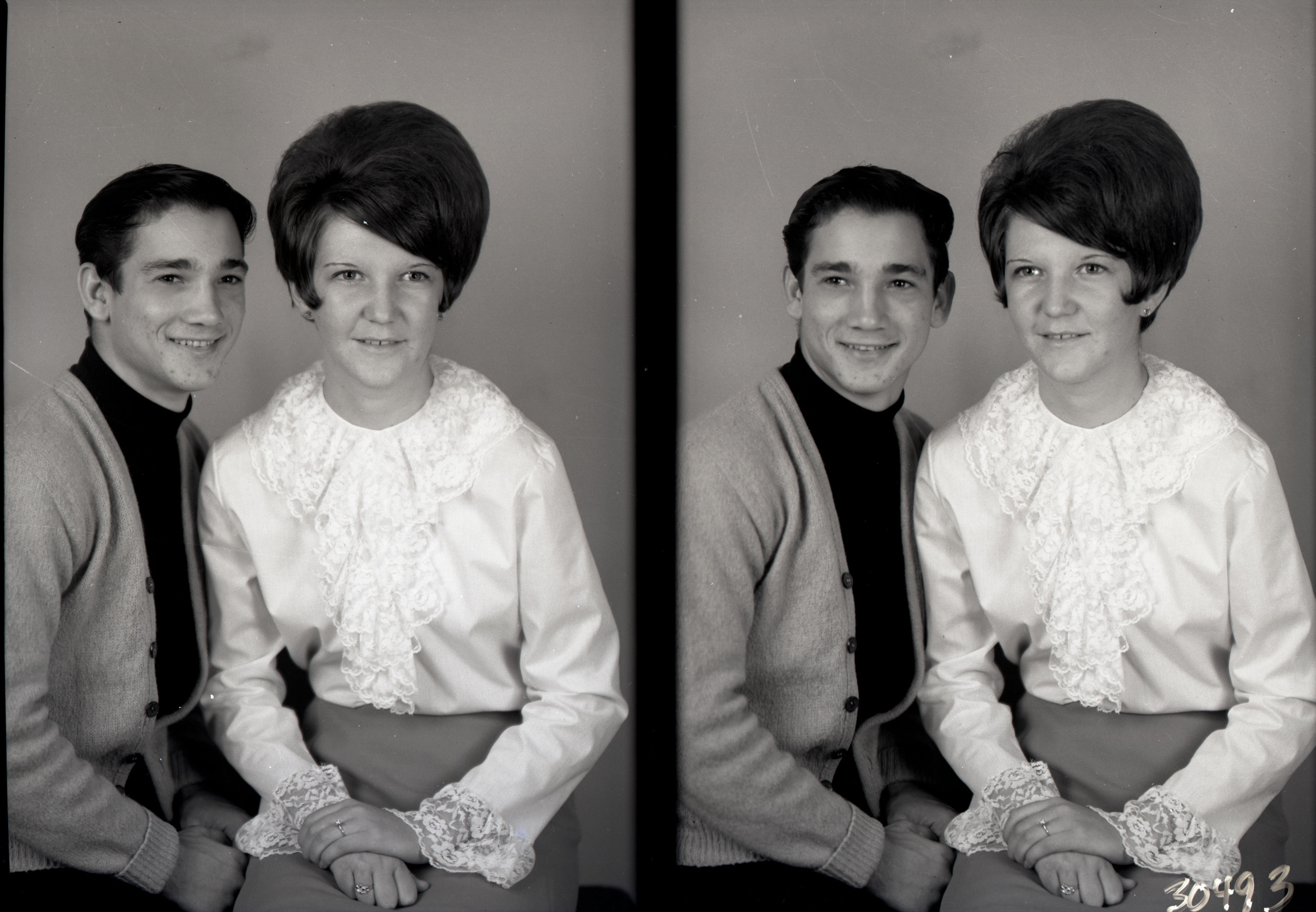 Photo of two separate photographs of Andrew Thomas Funkhouser seated with his wife, Judy Ann (Cook) Funkhouser.