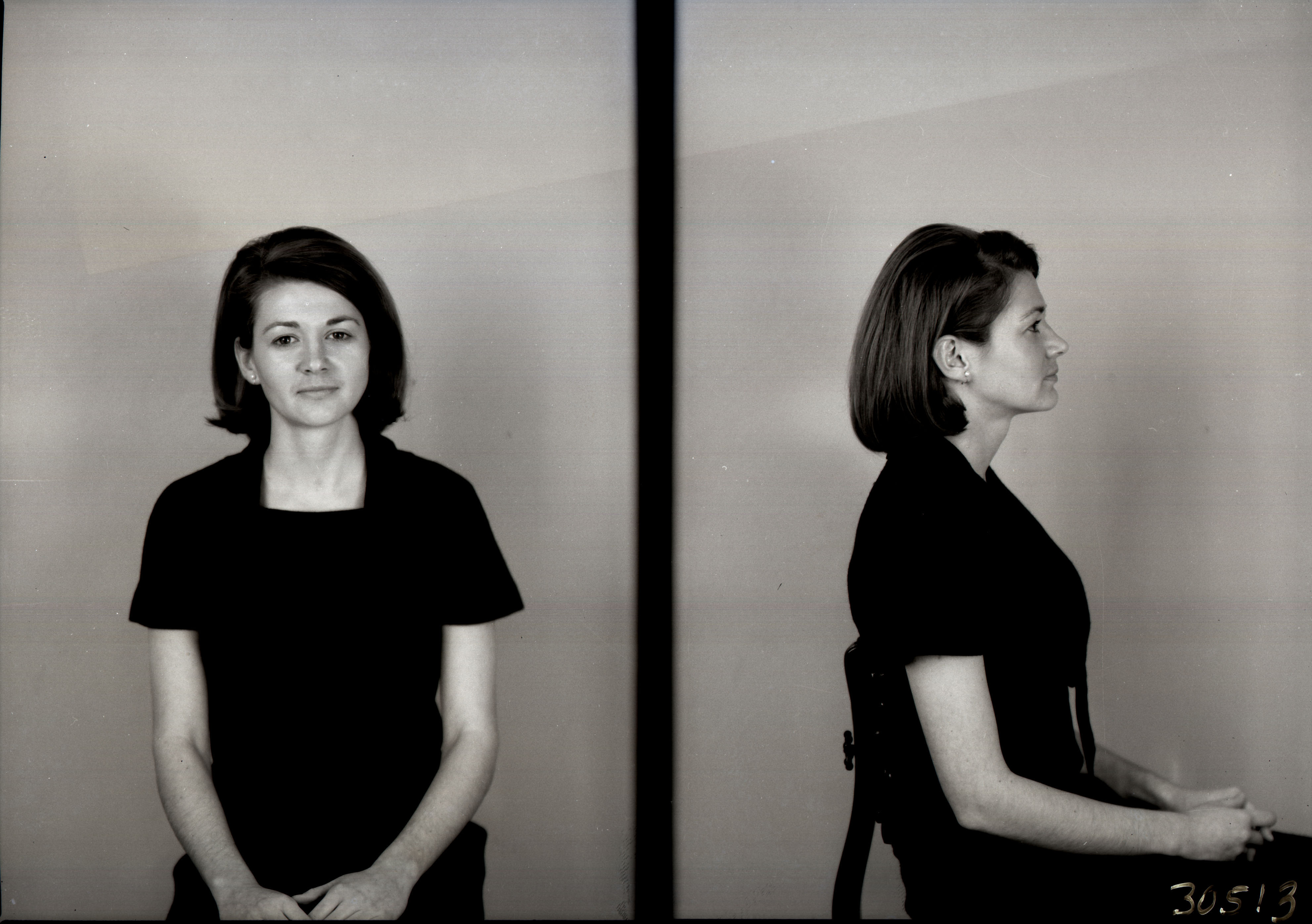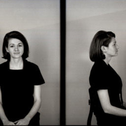 Photo of two separate photographs of the same unidentified young woman with straight hair.