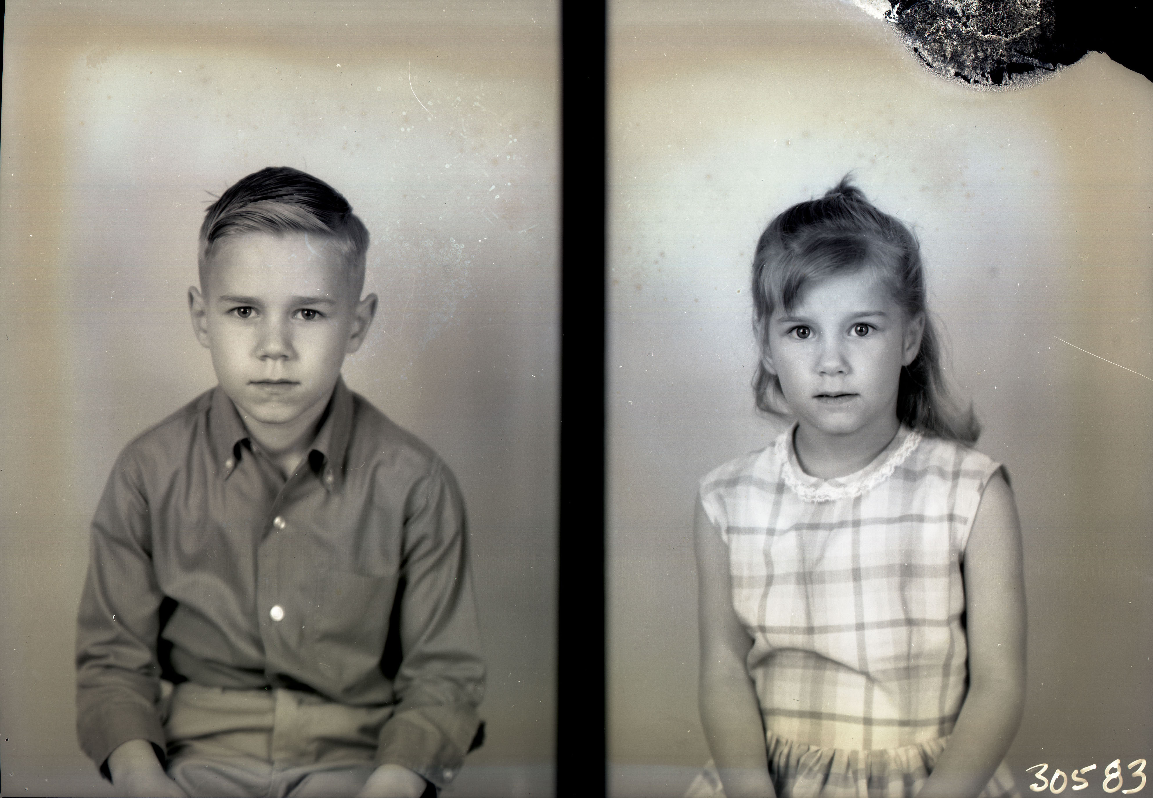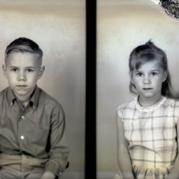Photo of two separate photographs of two different, unidentified children, a boy on the left and a girl on the right.