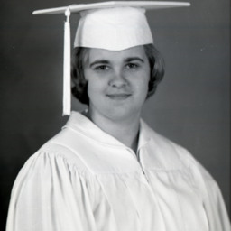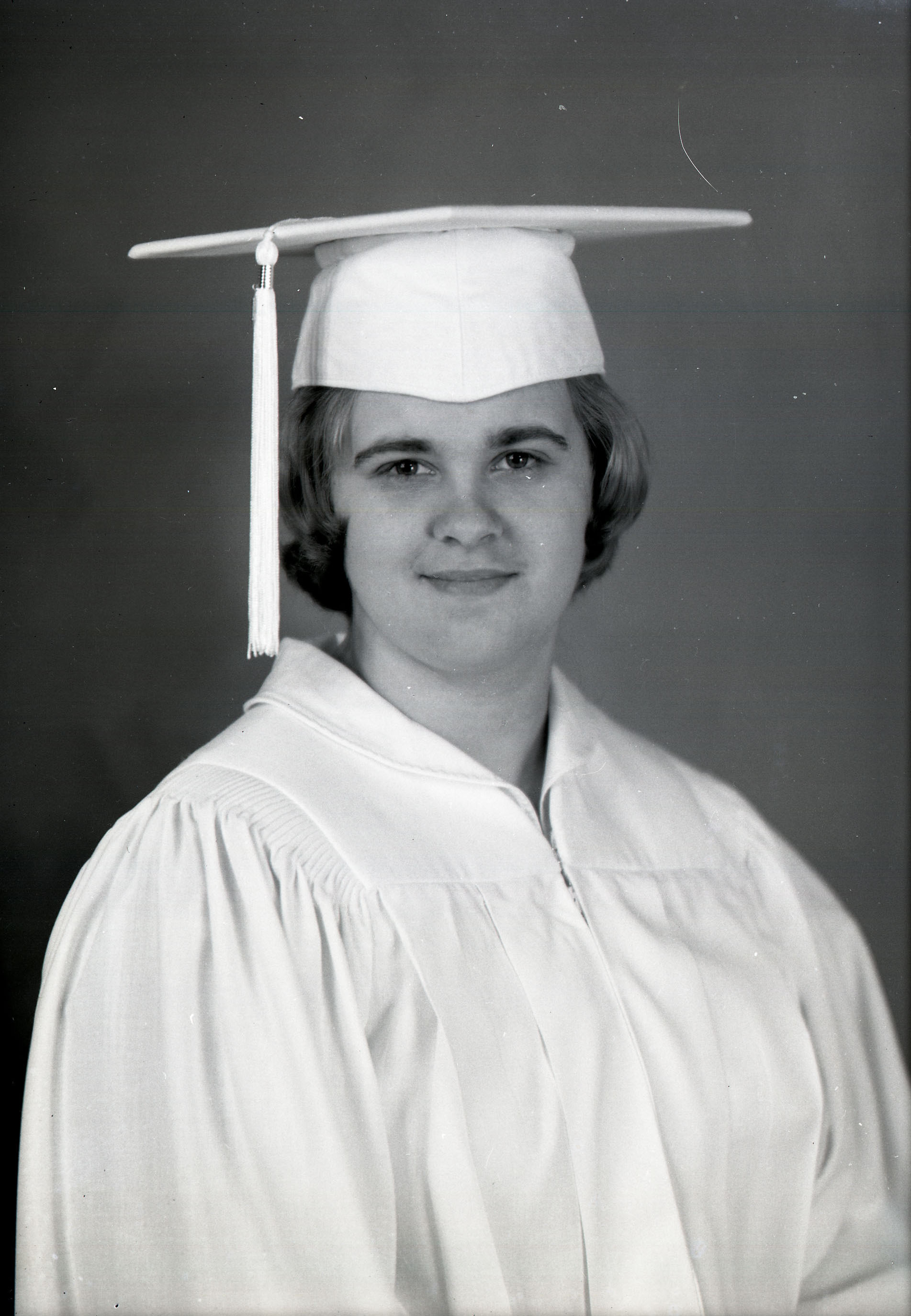 Portrait photograph of an unidentified young woman wearing a graduation cap and gown.