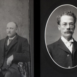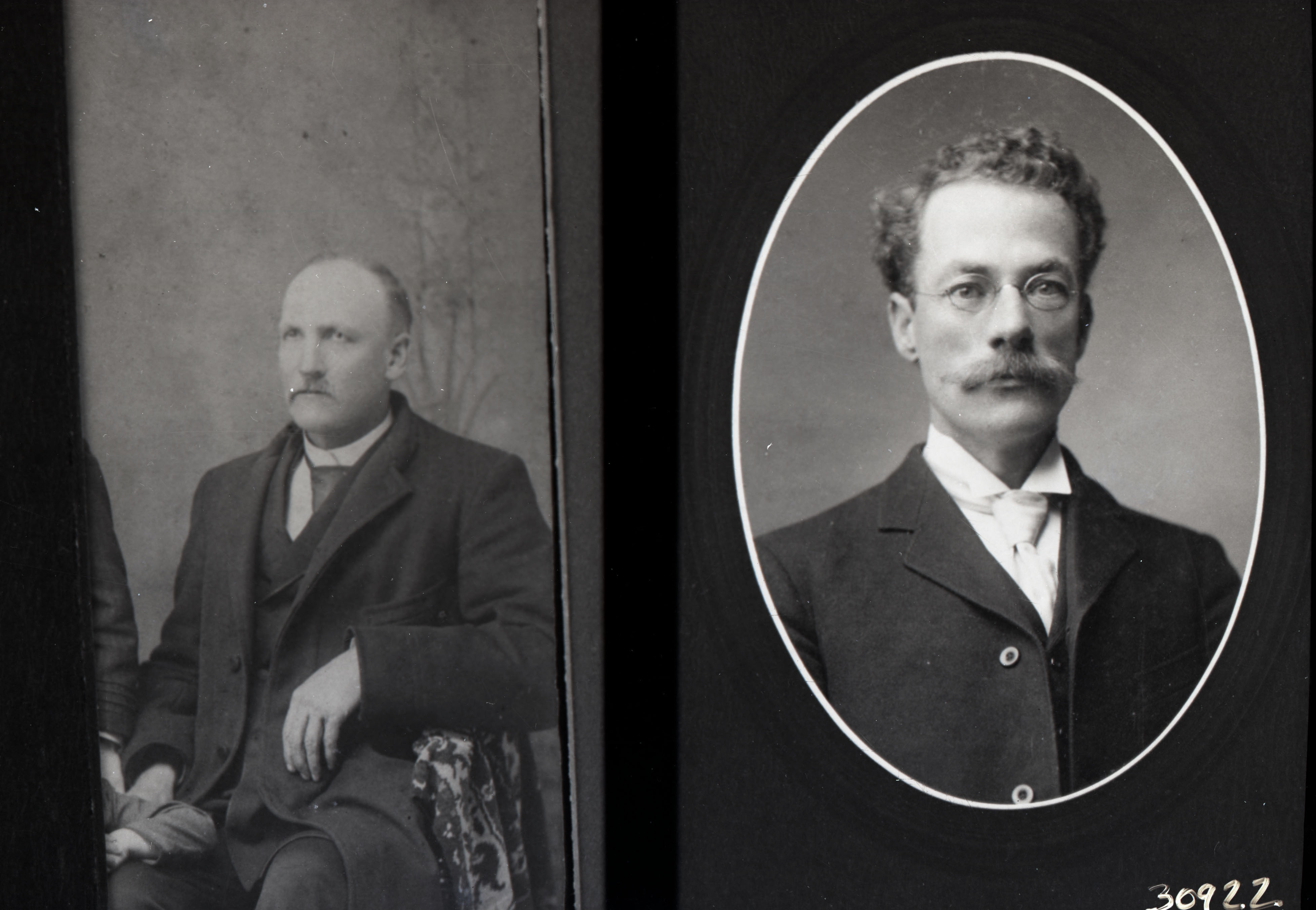 Photo of two separate photographs of different unidentified men, both with mustaches.