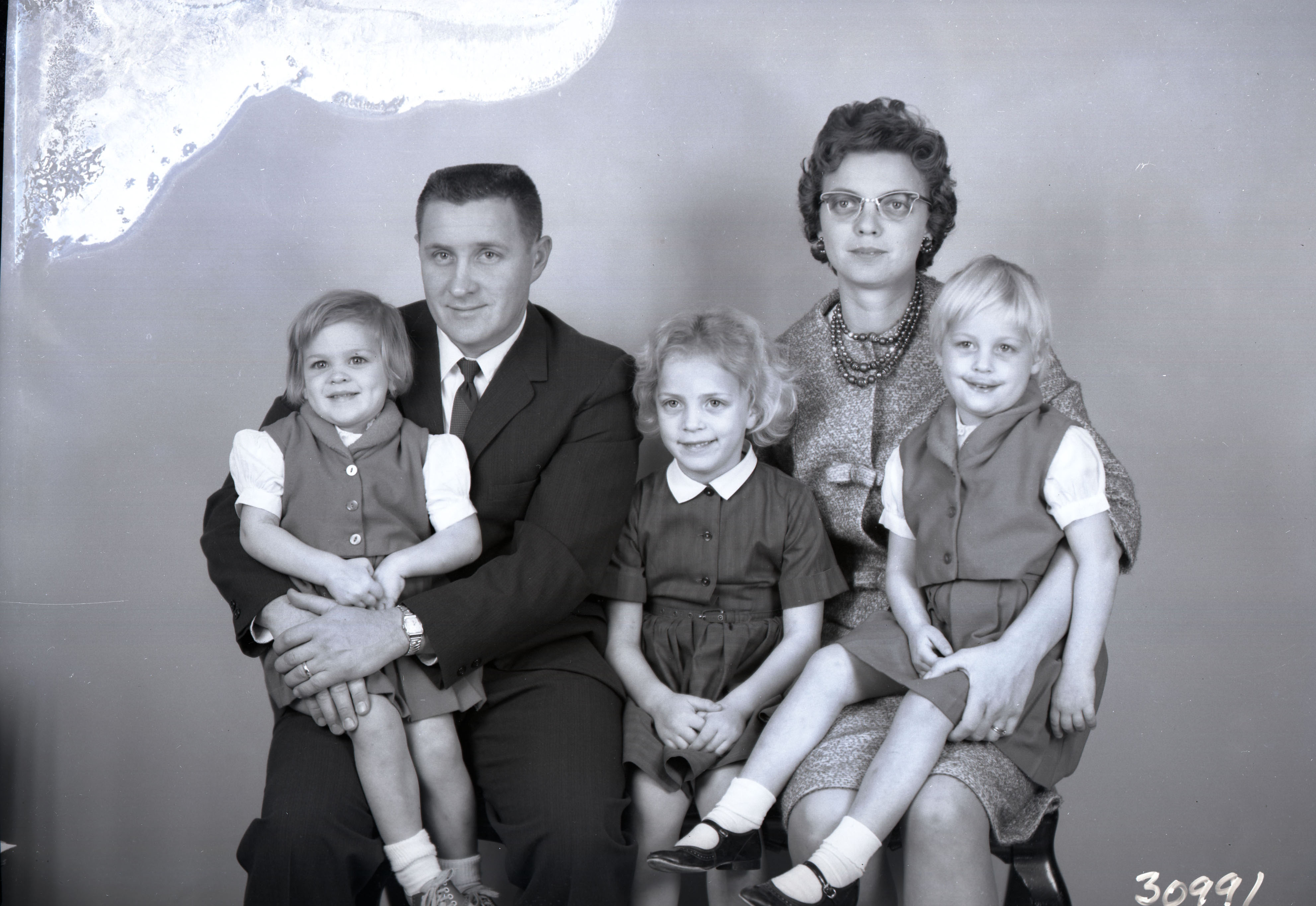 Photograph of Robert Irvin "Bobby" Windle and his first wife, Mary Ann (Artz) Windle, seated with their three young daughters.