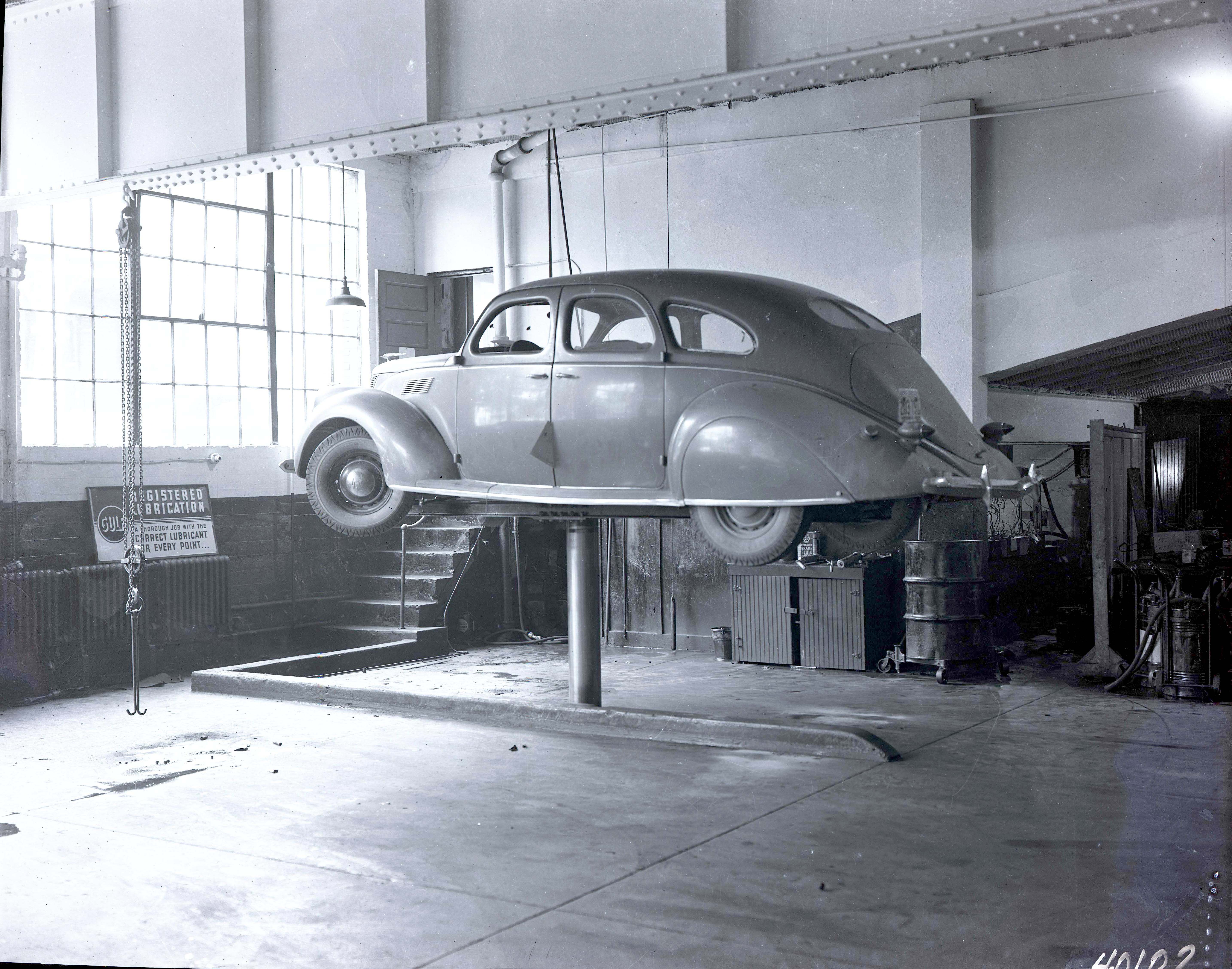 Morrison Studio, “Automobile on a Lift in a Commercial Garage,” Shenandoah County Library Archives, accessed December 5, 2025, https://archives.countylib.org/items/show/74418.
