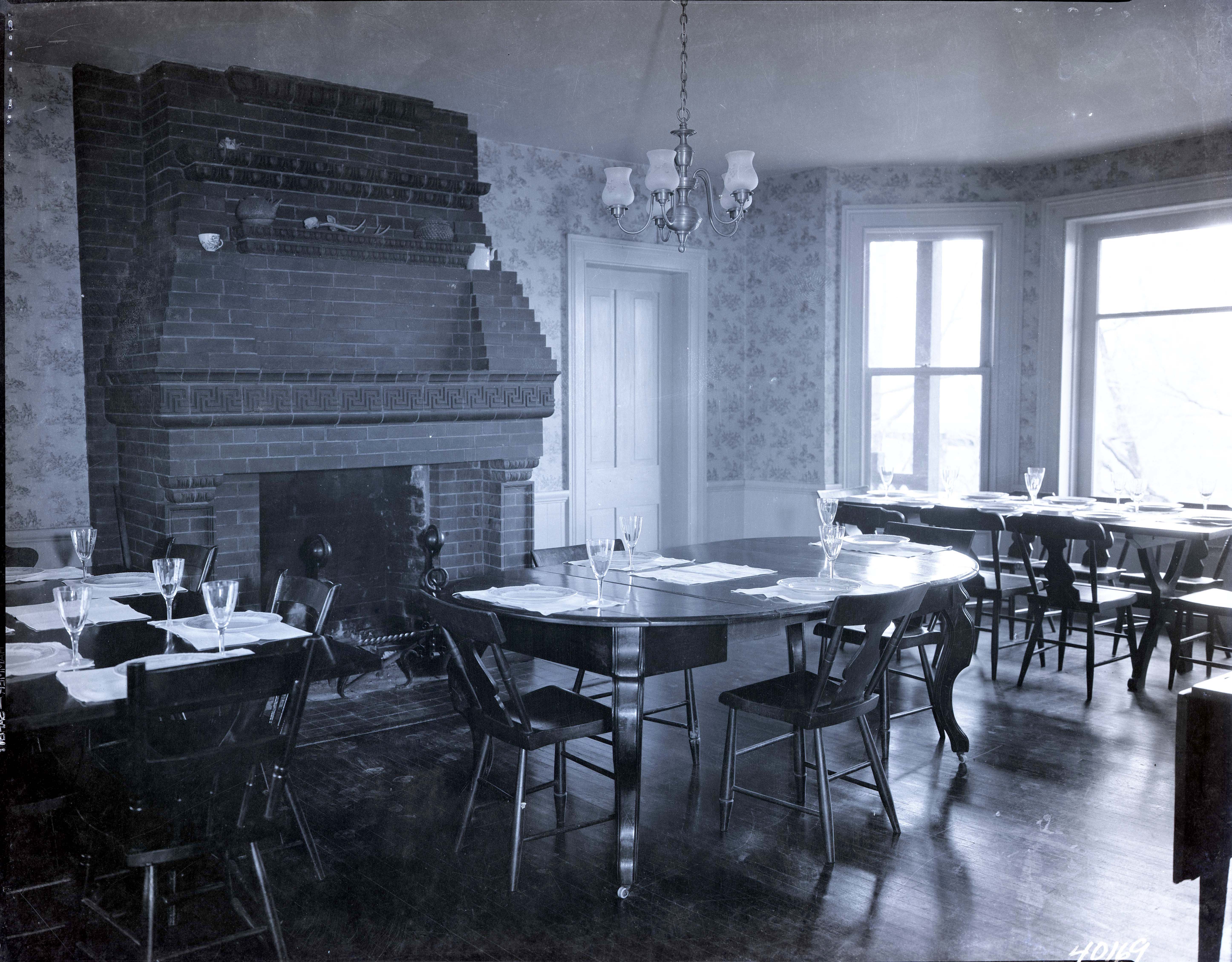 Interior of a commercial dining room, possibly in a restaurant or inn.