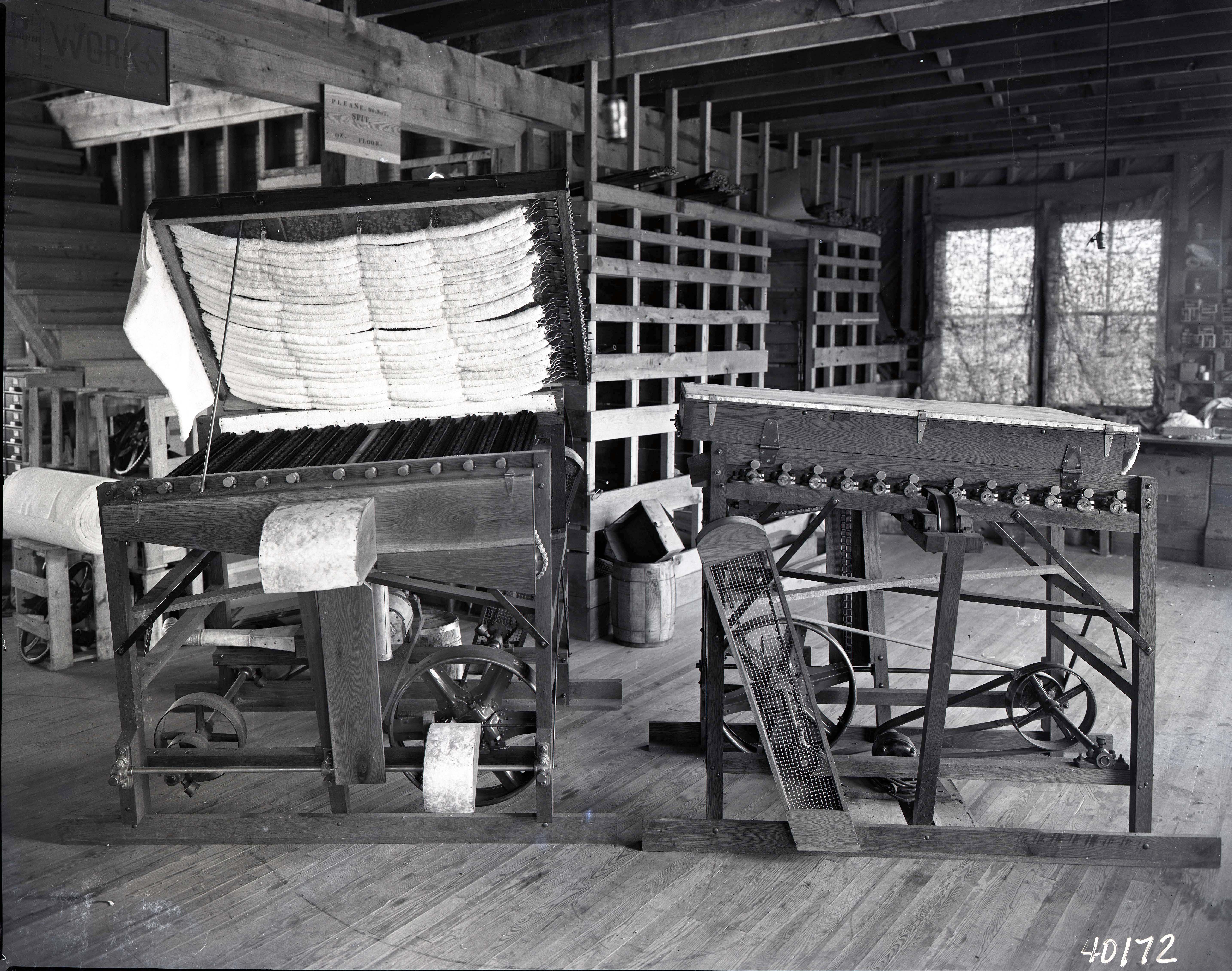 Photograph of a type of fruit cleaning and polishing machine manufactured by the Grabill Manufacturing Plant.