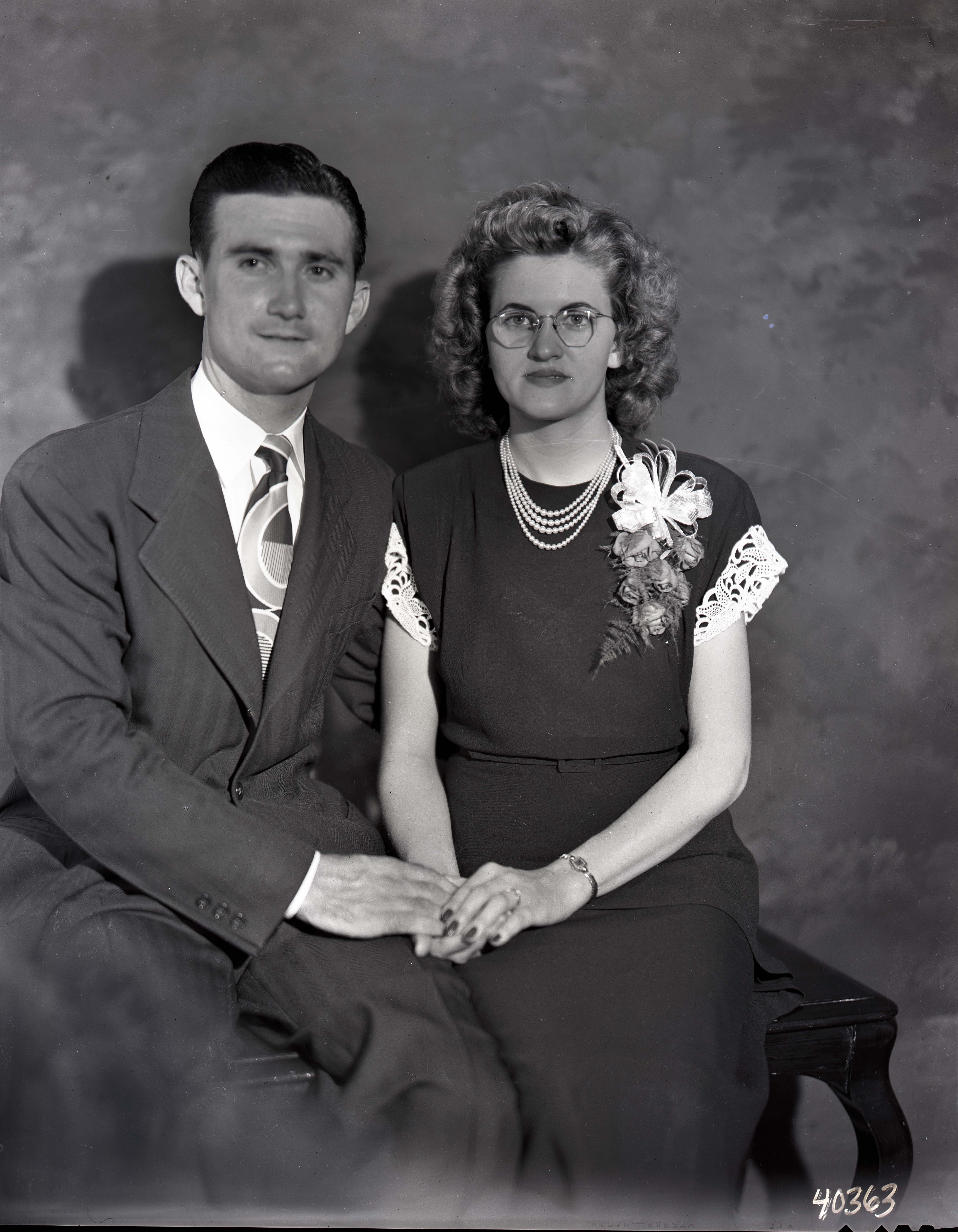 Photograph of Everette Leake, seated with his wife, Shirley E. (Dellinger) Leake.