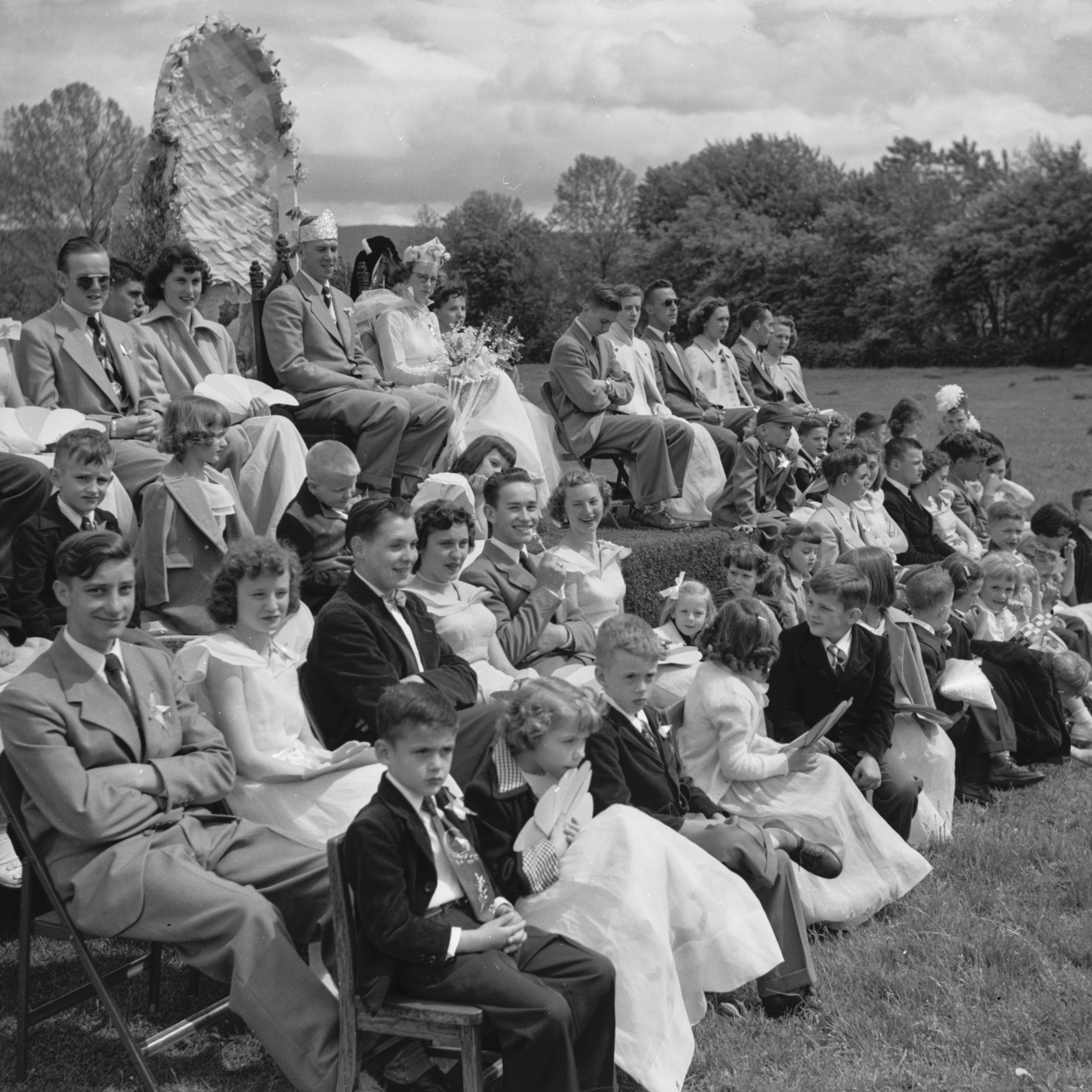 Group photograph of attendees of the Triplett School May Day celebration on May 13, 1952.