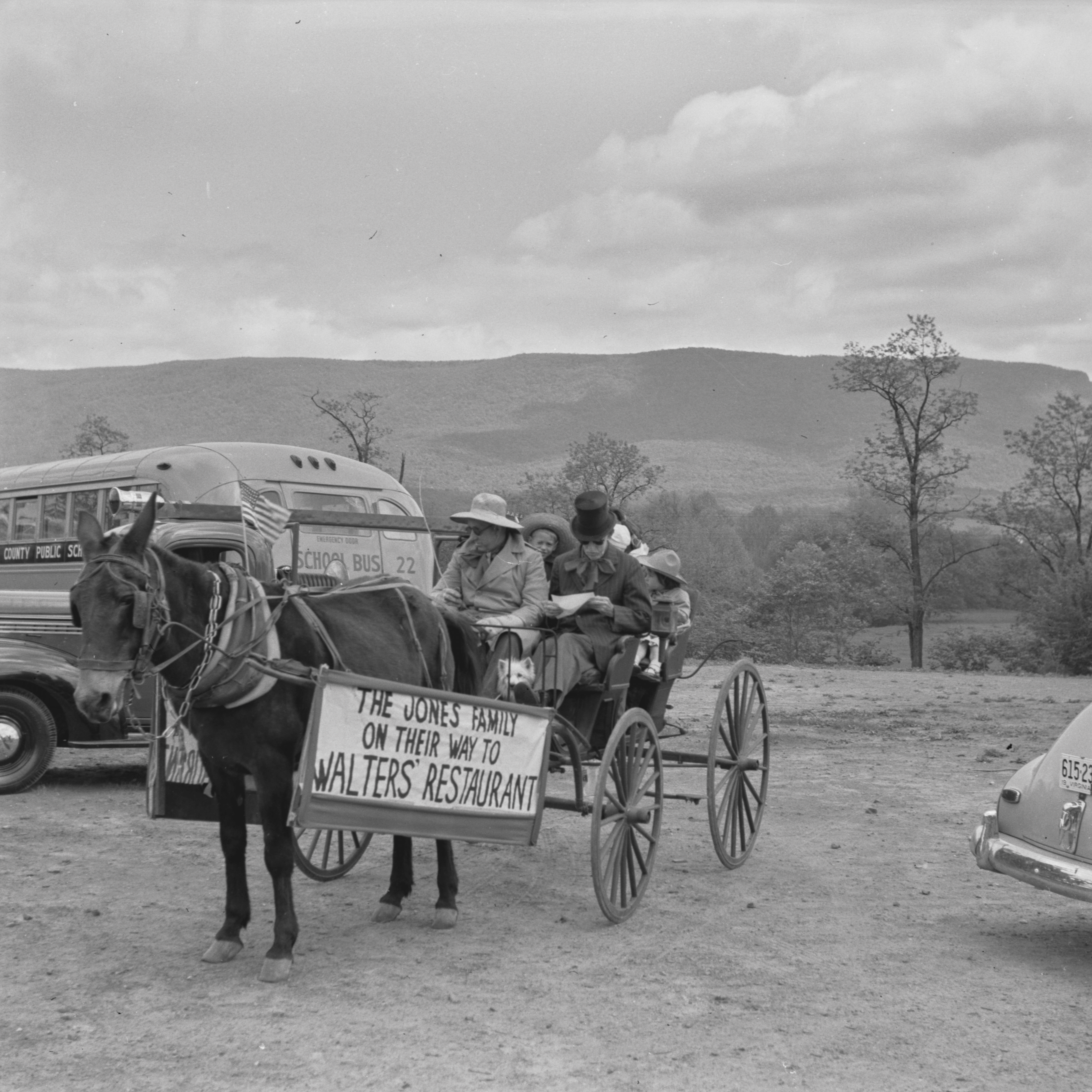 May Day 1952 parade entrant for Walters' Restaurant. "Pop" Walters is wearing top hat.