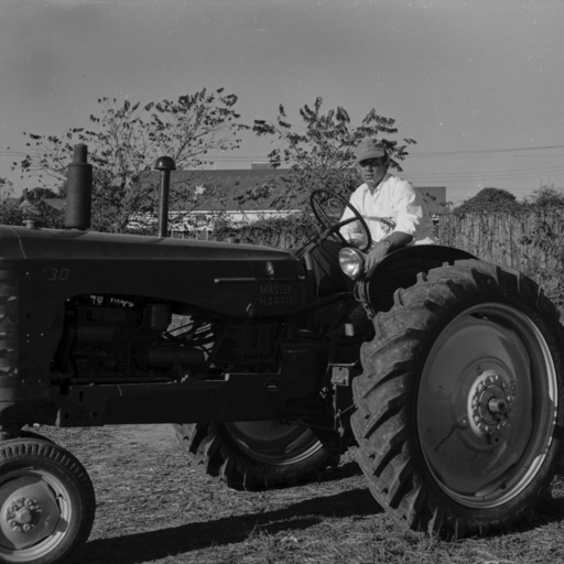 Photograph of a man on a tractor at the Triplett School Fair taken on October 19-20, 1950.