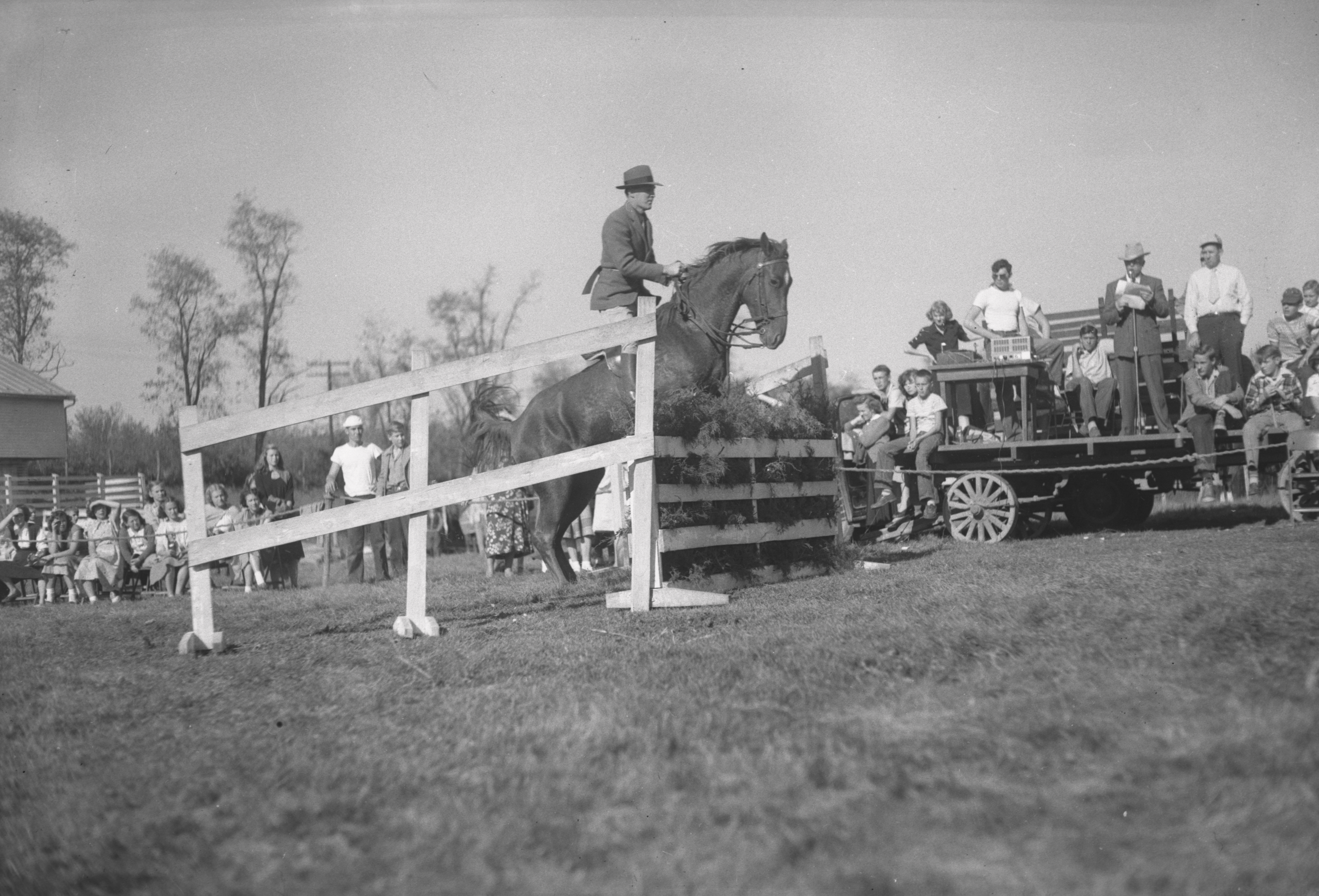 Photograph taken during a horse show competition at the Triplett School Fair on October 19-20, 1950.