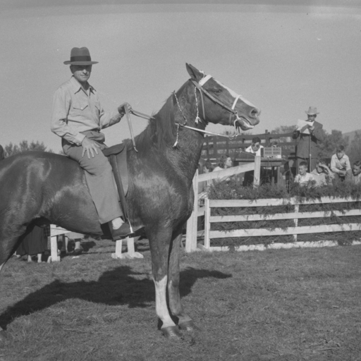 Photograph of a man on a horse at the Triplett School Fair taken on October 19-20, 1950.