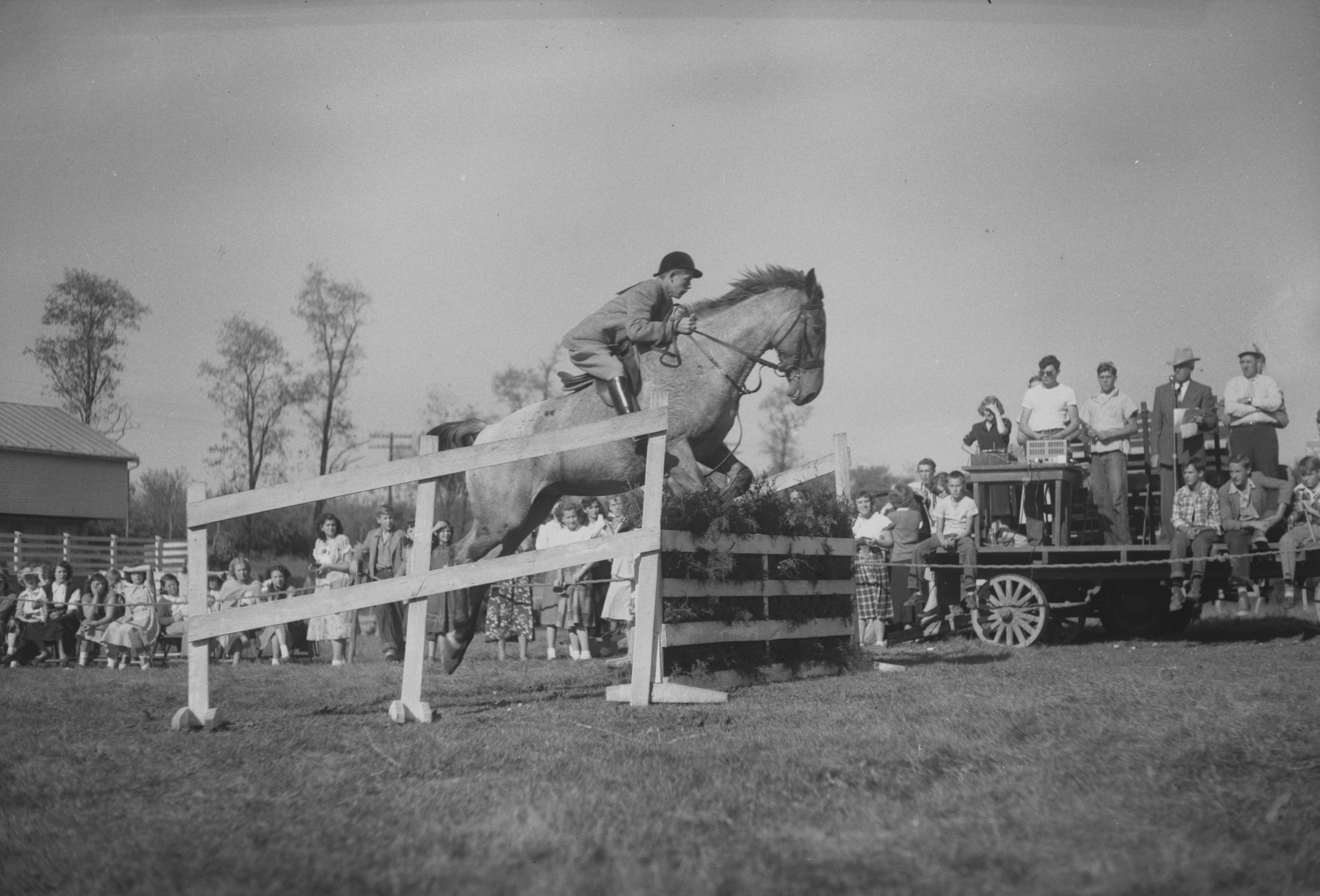 Photograph of Fred Sigler on a horse at an event at the Triplett School Fair taken on October 19-20, 1950.