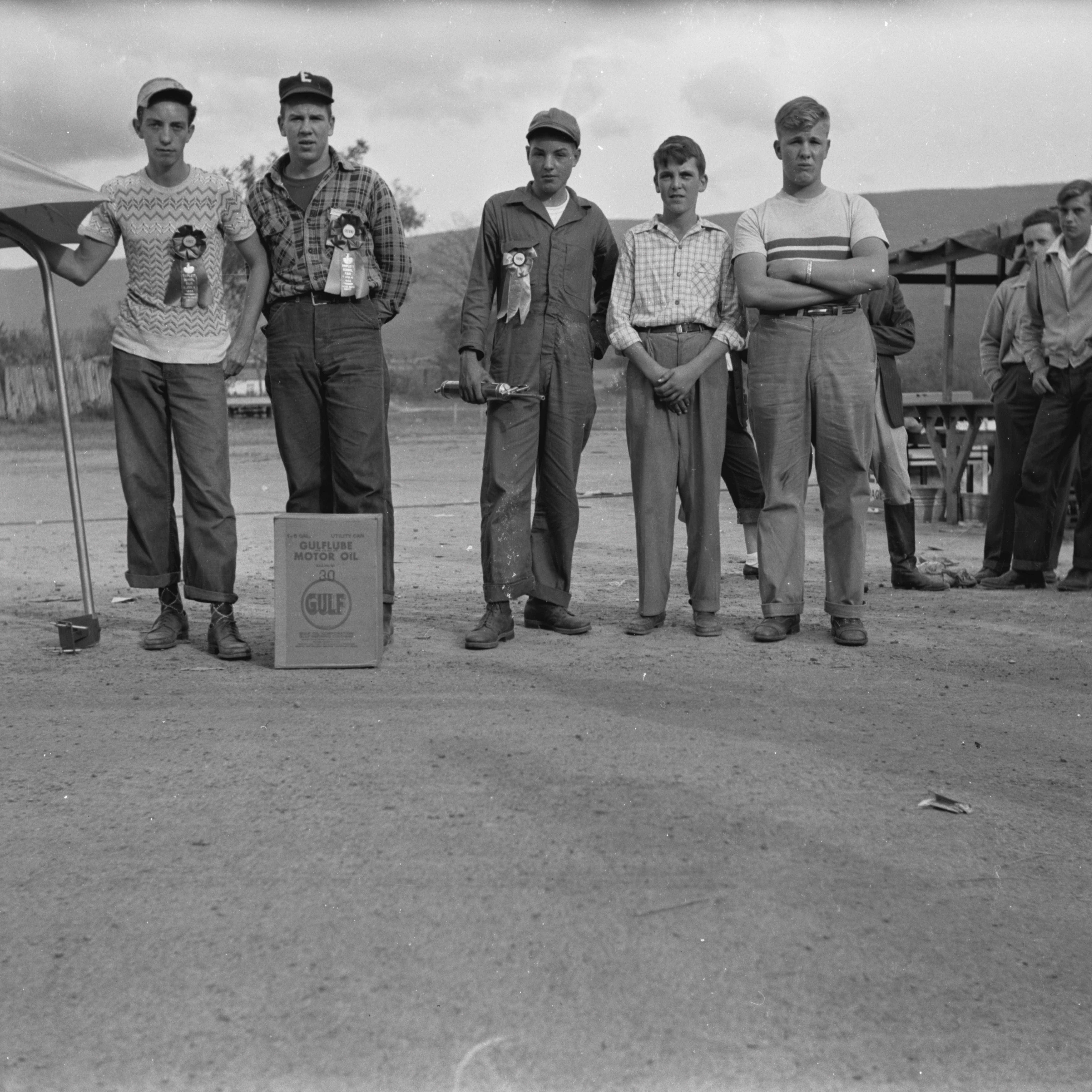 Ribbon winners include Richard Miller, left, and Kenneth Hawkins, right. I can't identify others with certainty.