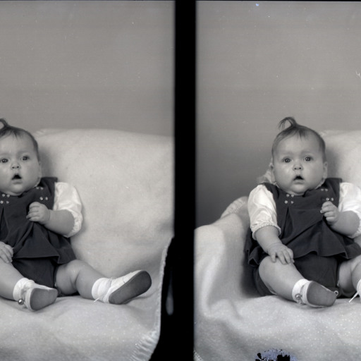 Photo of two separate photographs of the same unidentified young child with a single curl on the top of her head.