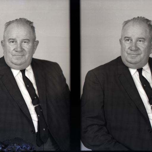 Photo of two separate portrait photographs of the same unidentified man in a suit and tie.