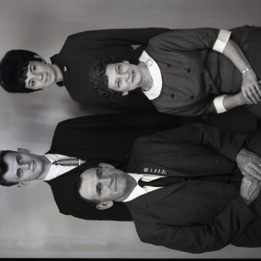 Unidentified man and woman are seated together in front while two unidentified young adults, a young man and a young woman, are standing behind them.