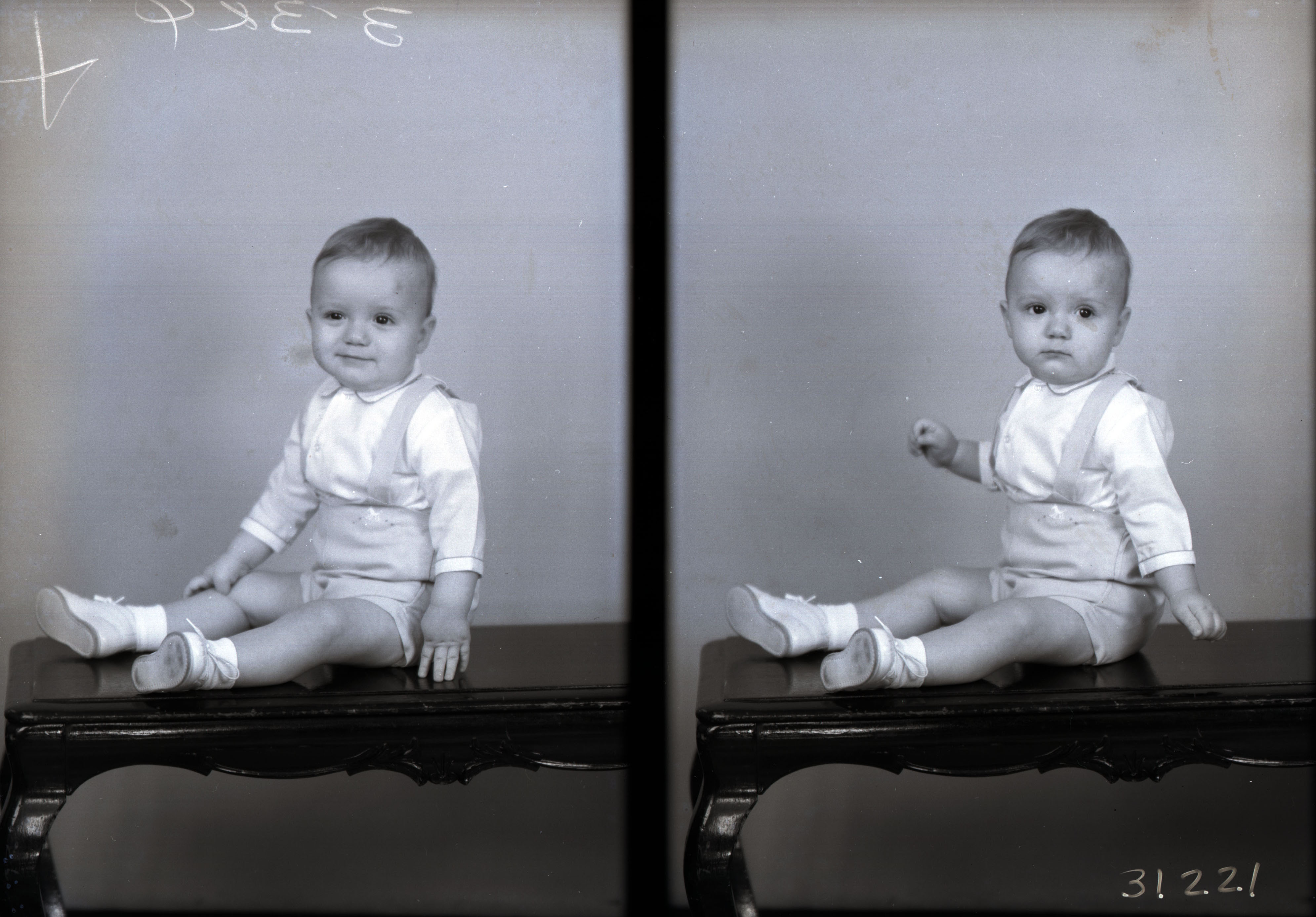 The image on the left has a mark at the top where the photographer noted which of the two images he planned to print.