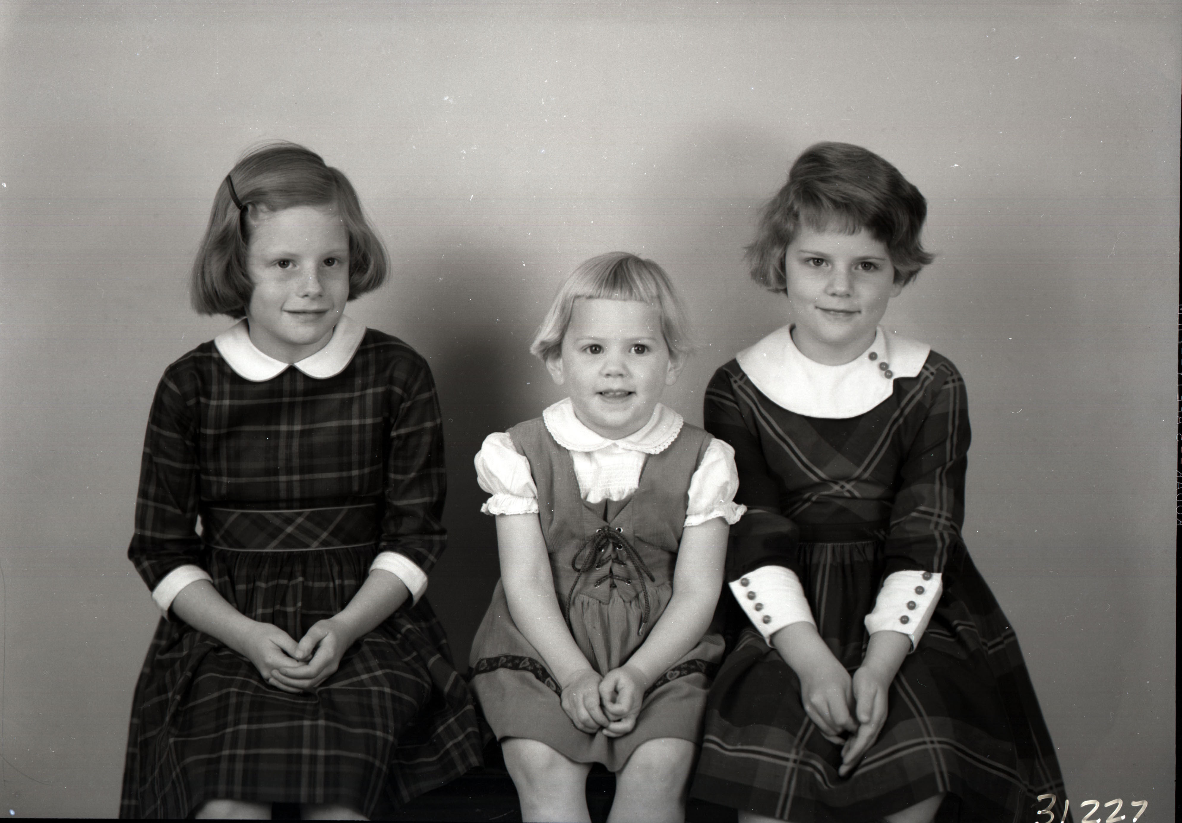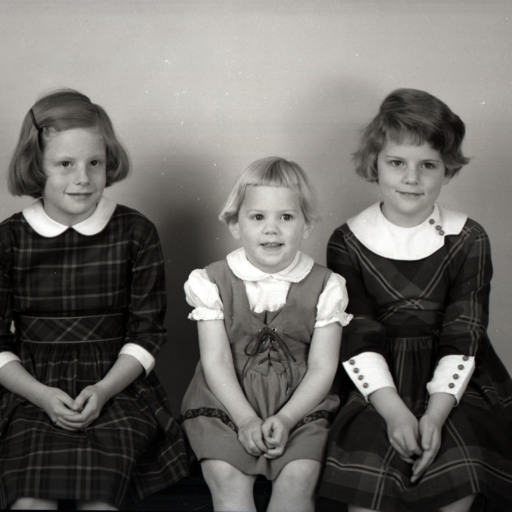 Three unidentified young girls of different ages are posed together.