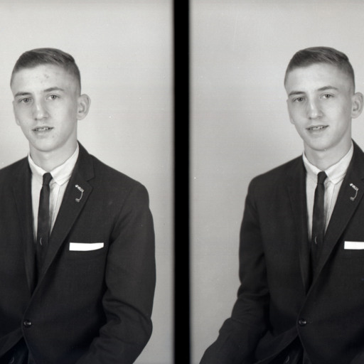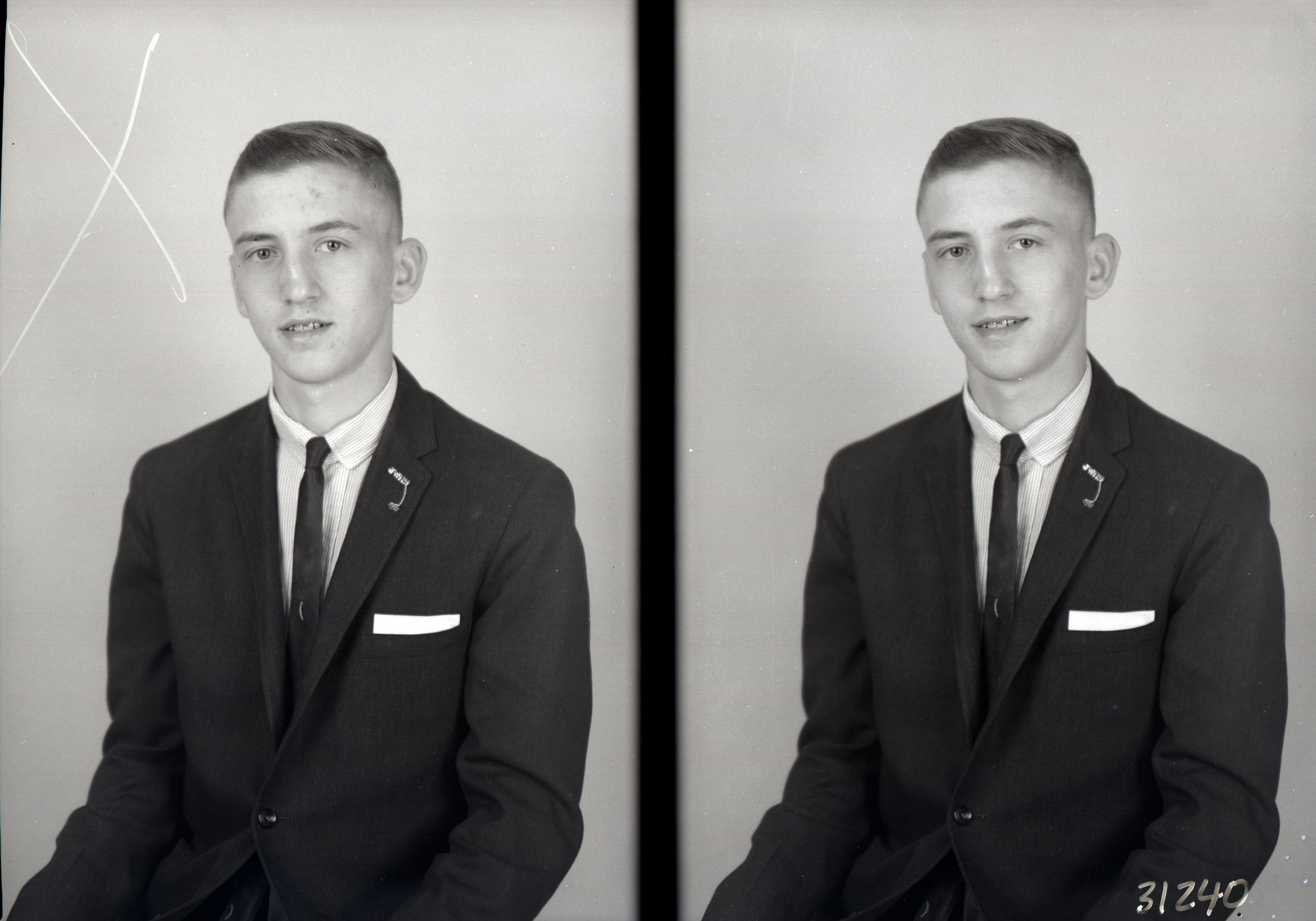 Photo of two separate portrait photographs of the same unidentified young man, possibly teen-aged, wearing a suit and tie.