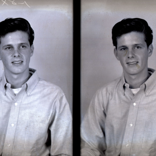 Photo of two separate portrait photographs of the same unidentified young man, possibly teen-aged.