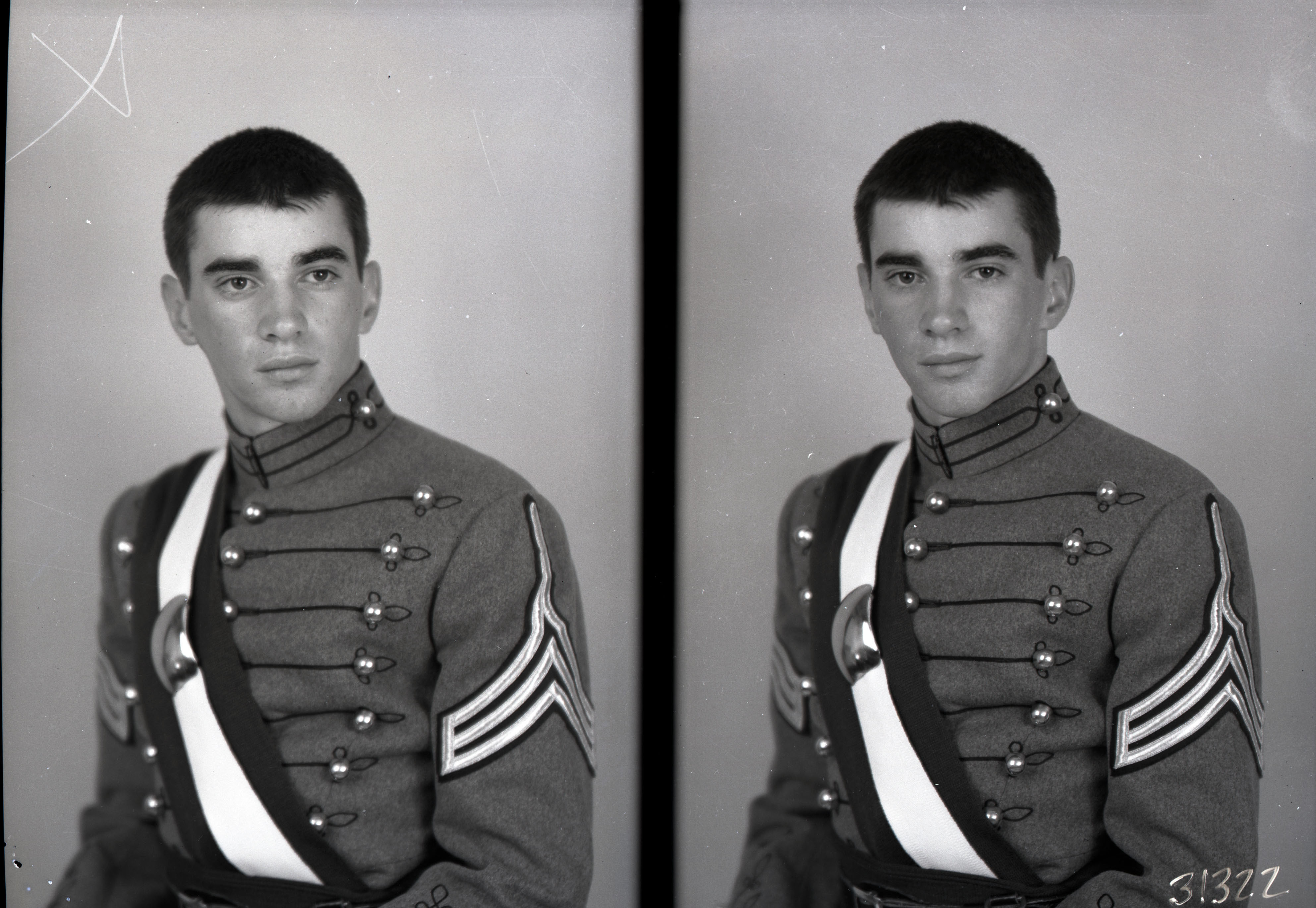 Photo of two separate portrait photographs of William "Billy" Bland Allen, III, as a cadet at Massanutten Military Academy (MMA).