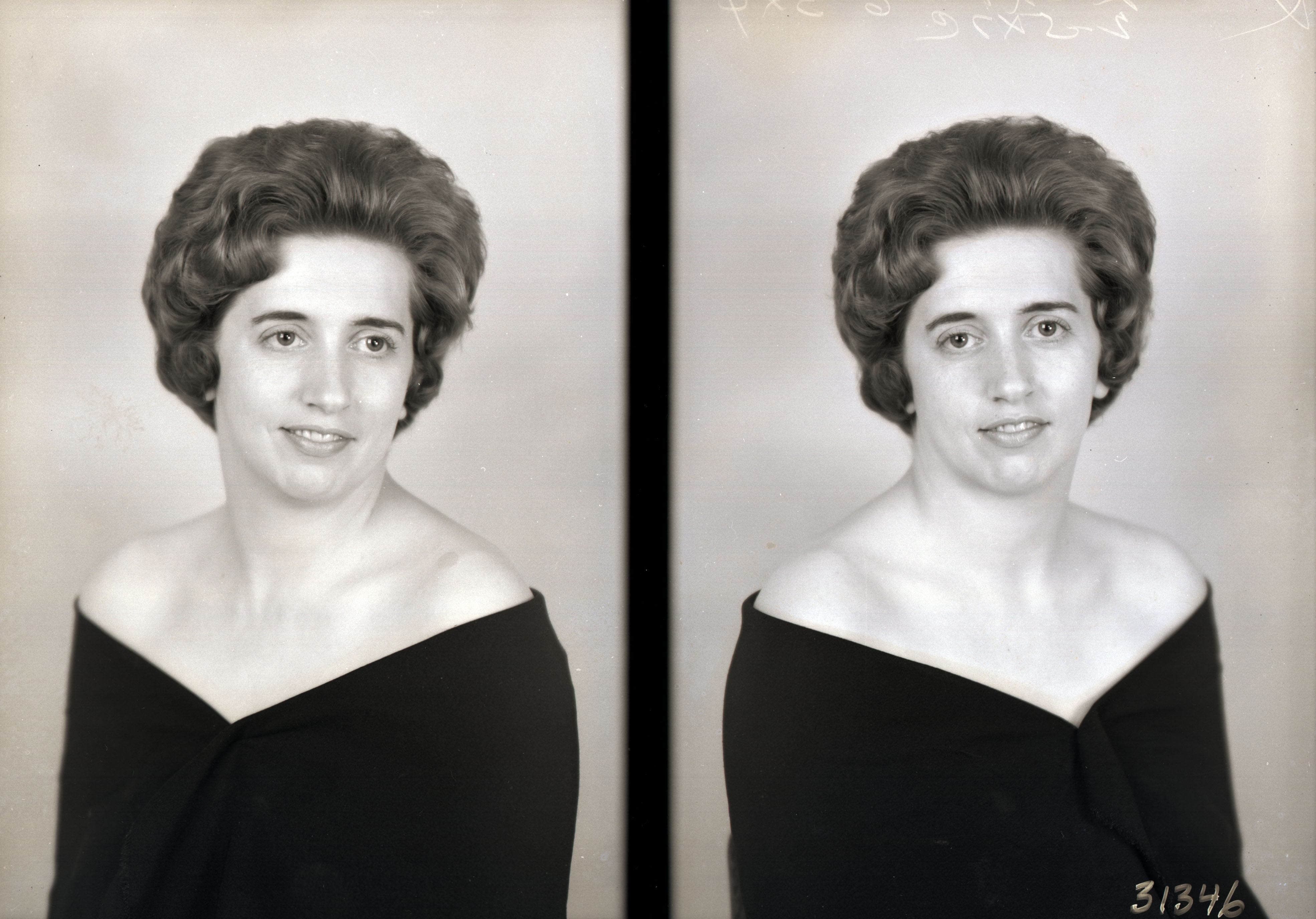 Photo of two separate portrait photographs of Janet Laverne (Cave) Hoover as a young woman with short styled hair.