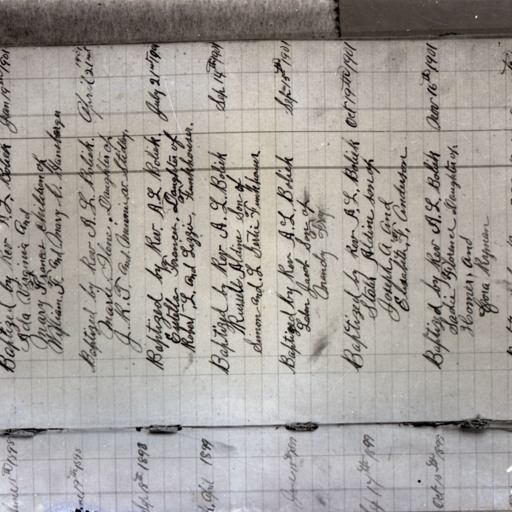 Photograph of a written list of infant baptisms performed in 1901 by Rev. A.L. Bolick.