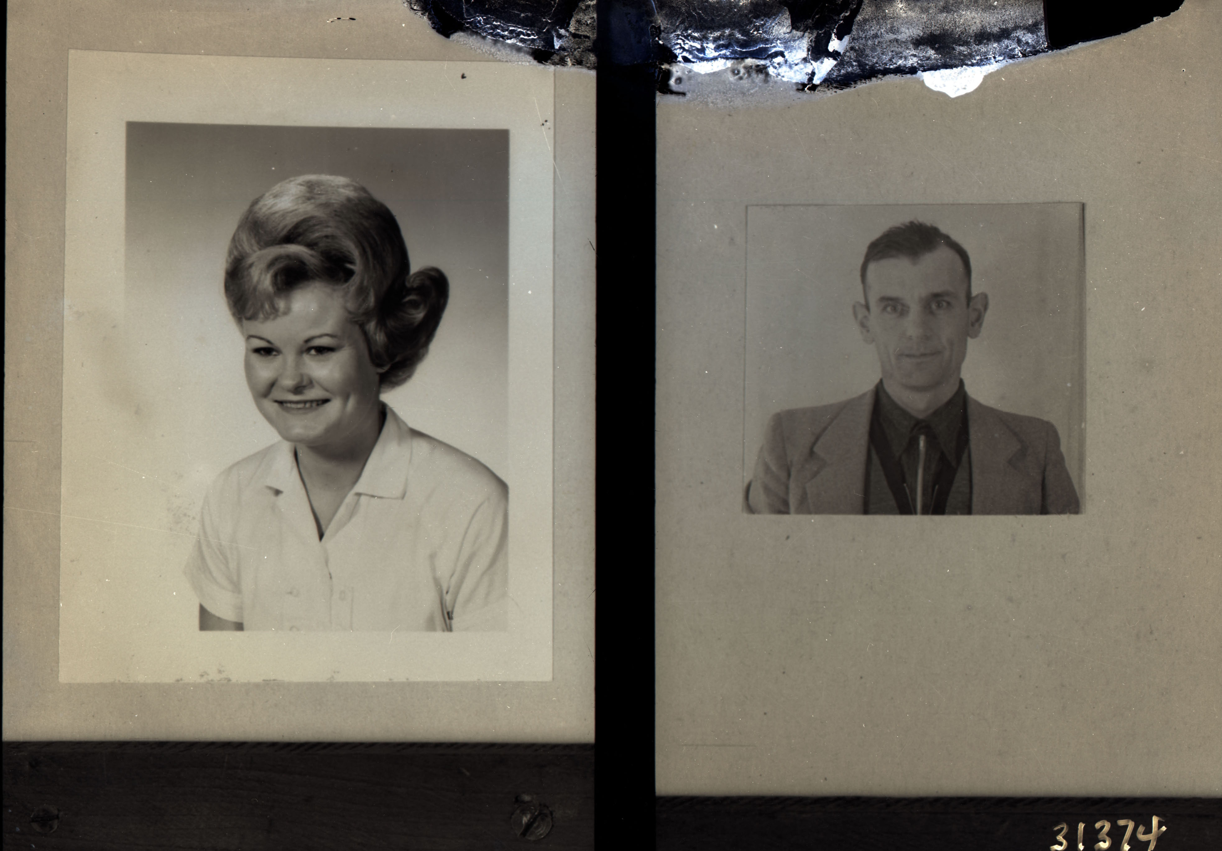 Photo of two separate portrait photographs of two different unidentified people.