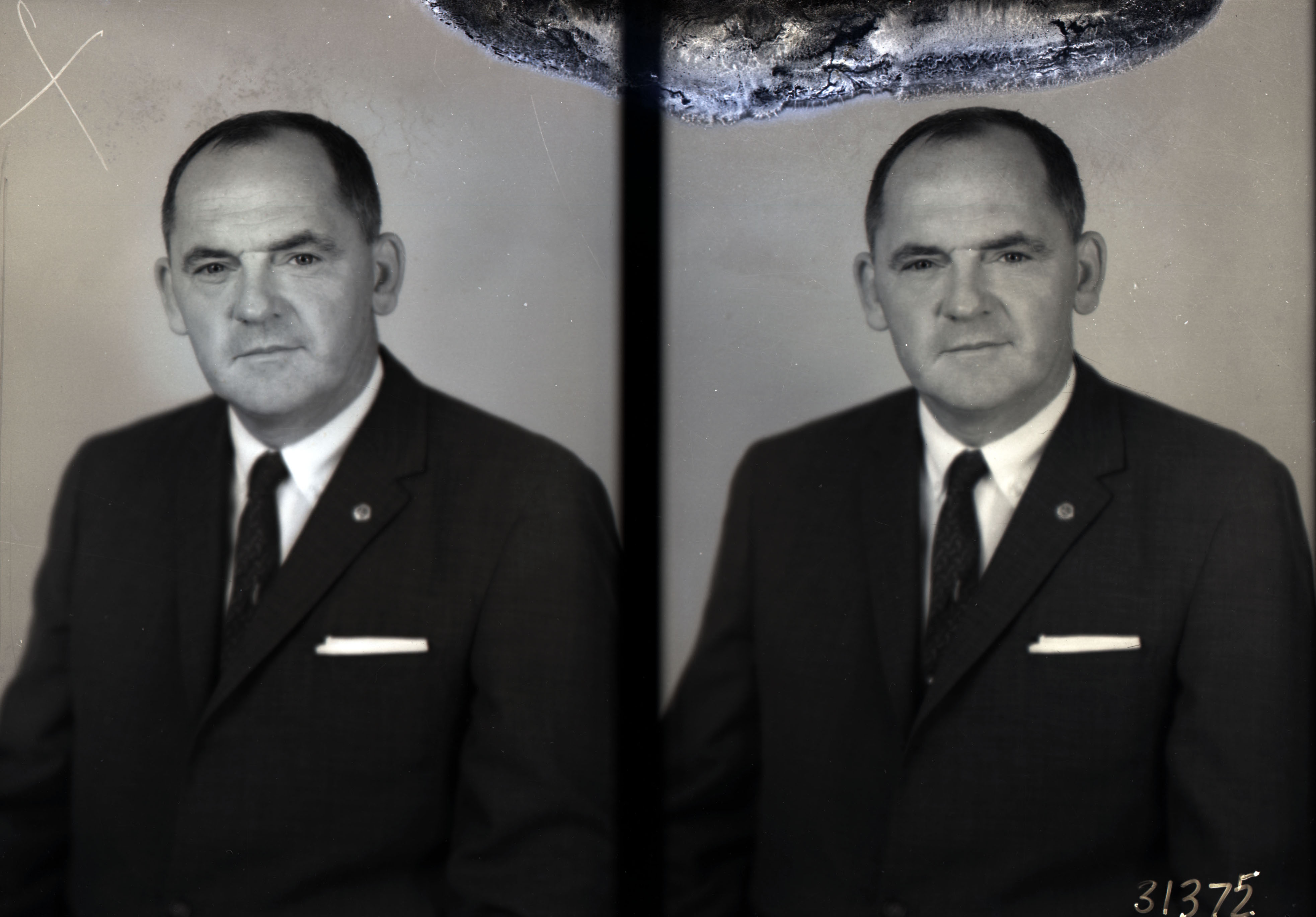 Photo of two portrait photographs of Frank G. Morrison in a suit and tie.