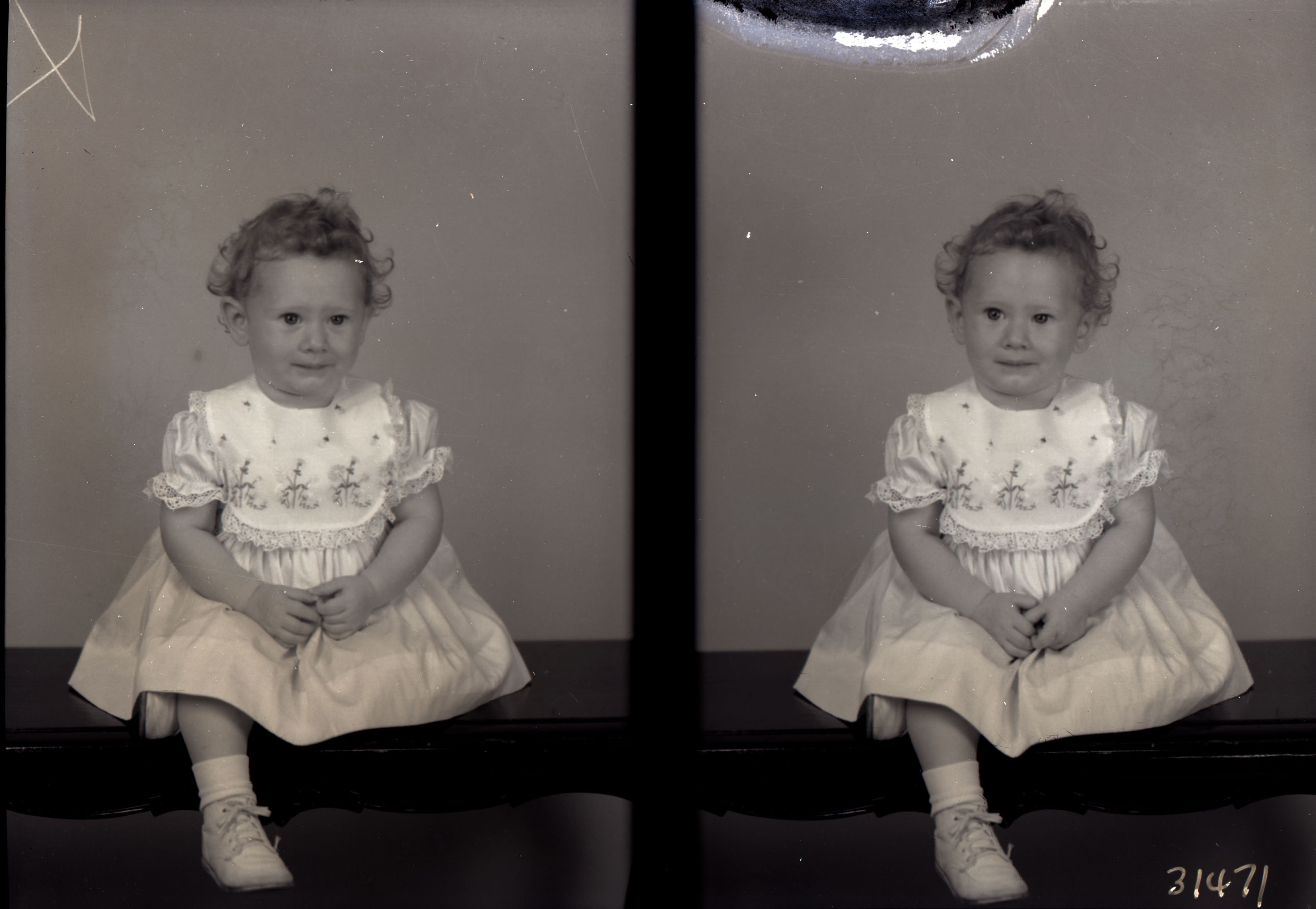 The image on the left has a mark at the top where the photographer noted which of the two images he planned to print.