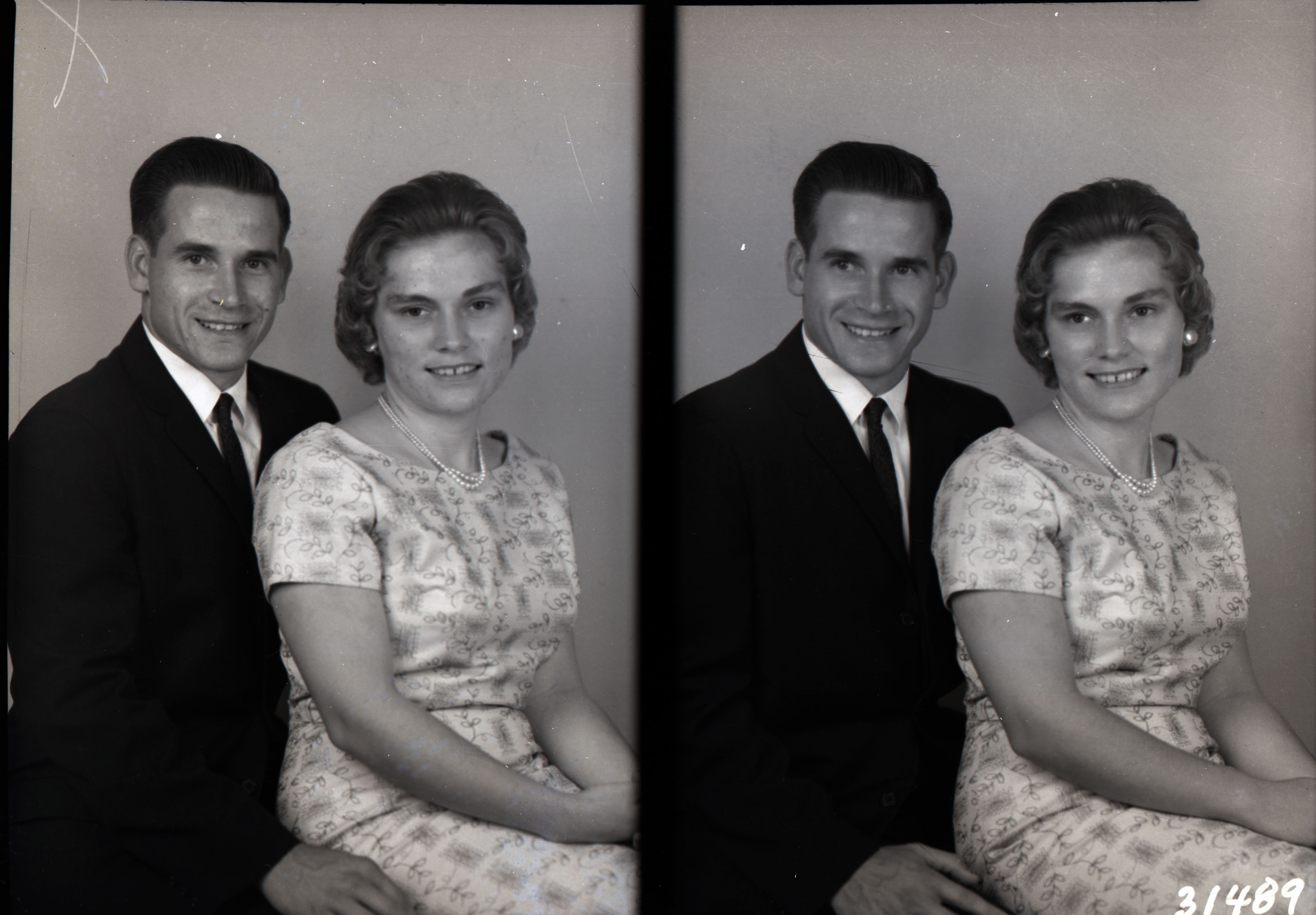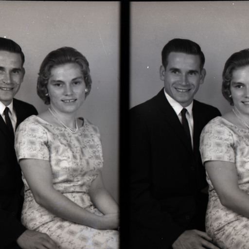 Photo of two separate photographs of Clarence Jones and his wife, Gayle Mozelle (Fisher) Jones, seated together.