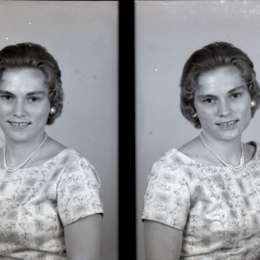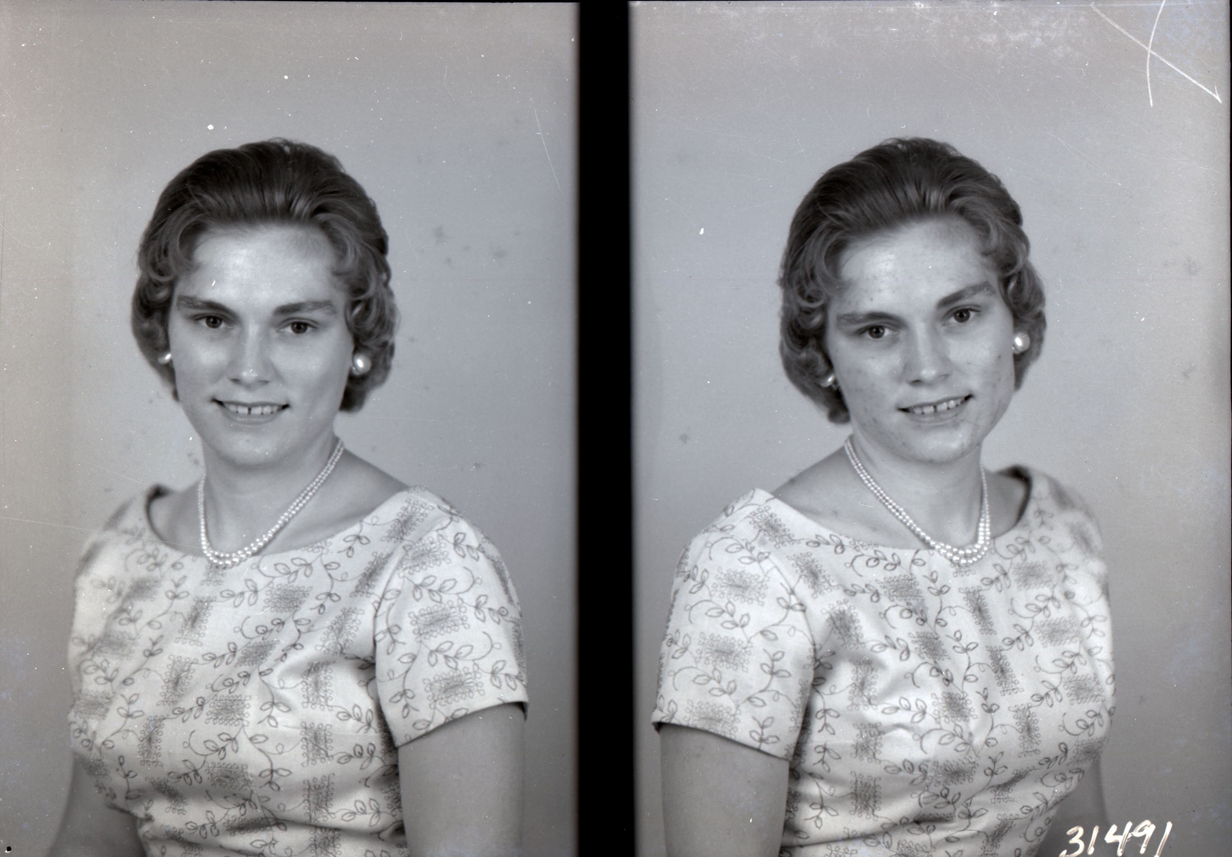 Photo of two separate portrait photographs of Gayle Mozelle (Fisher) Jones.