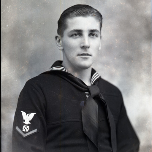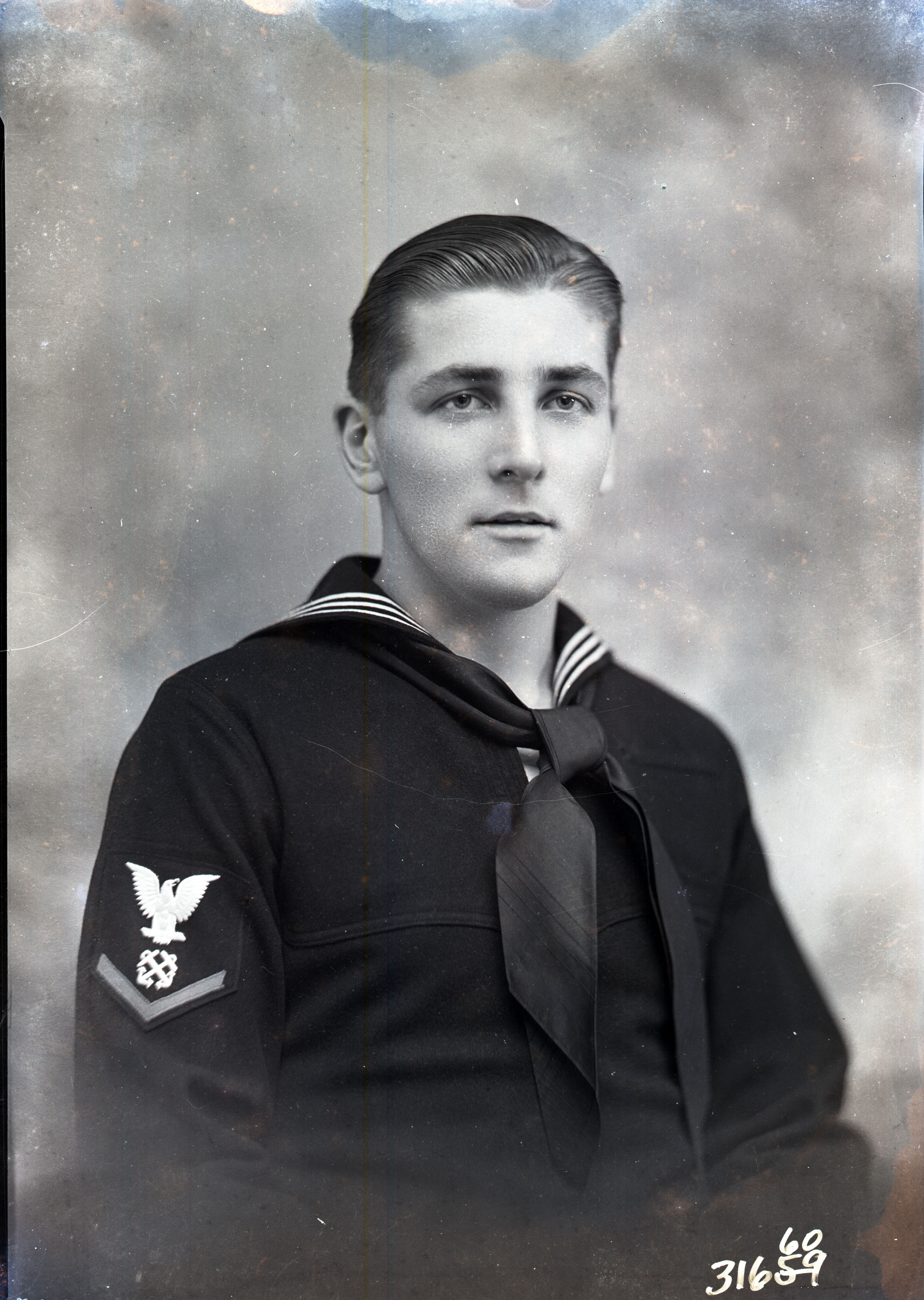 Portrait photograph of an unidentified young man in a U.S. Navy uniform.
