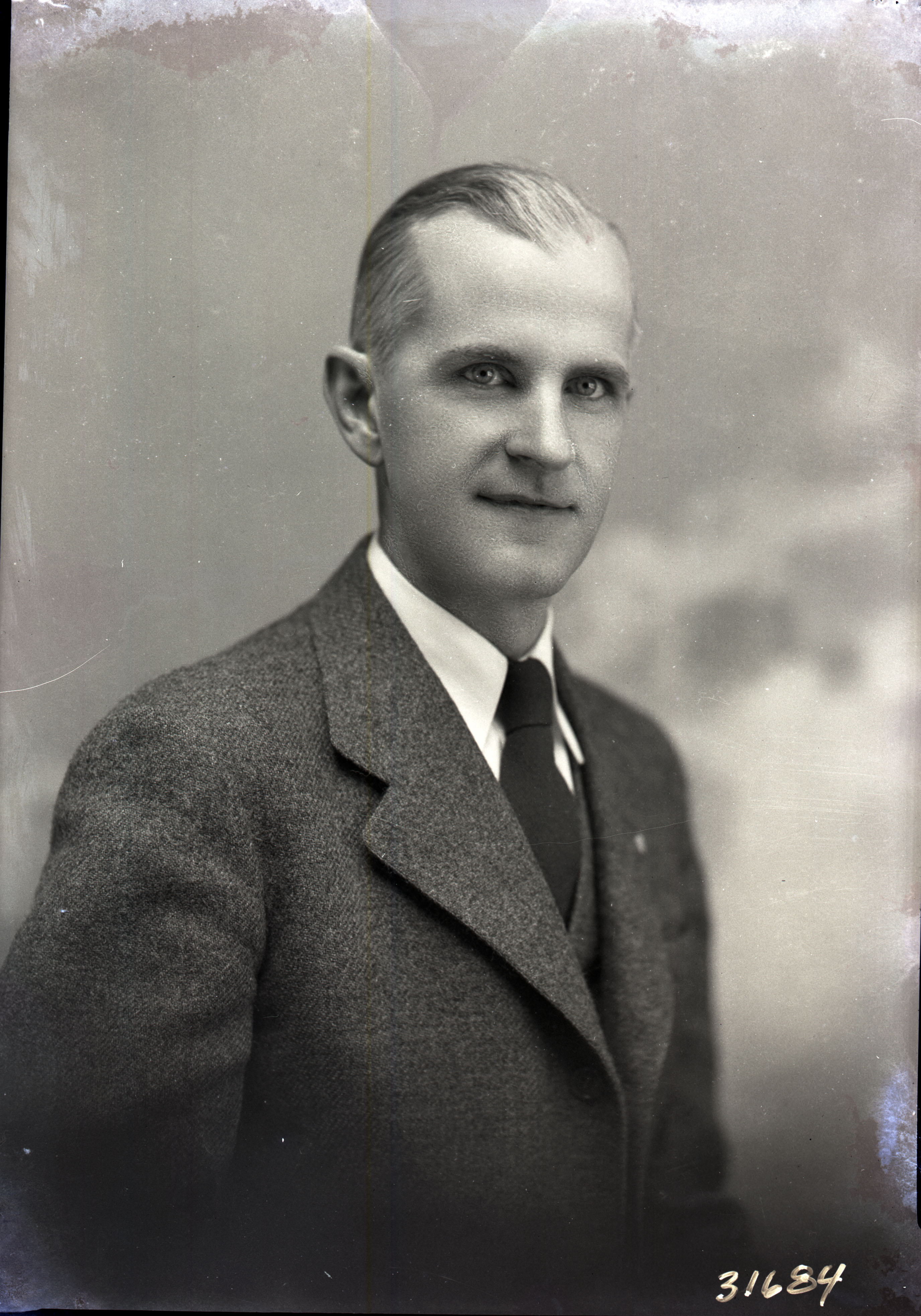 Portrait photograph of an unidentified man wearing a suit and tie.