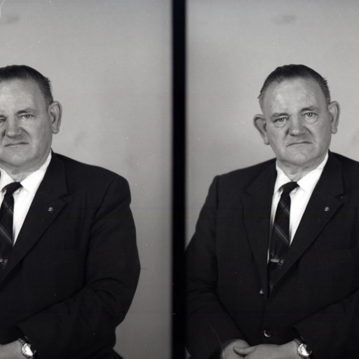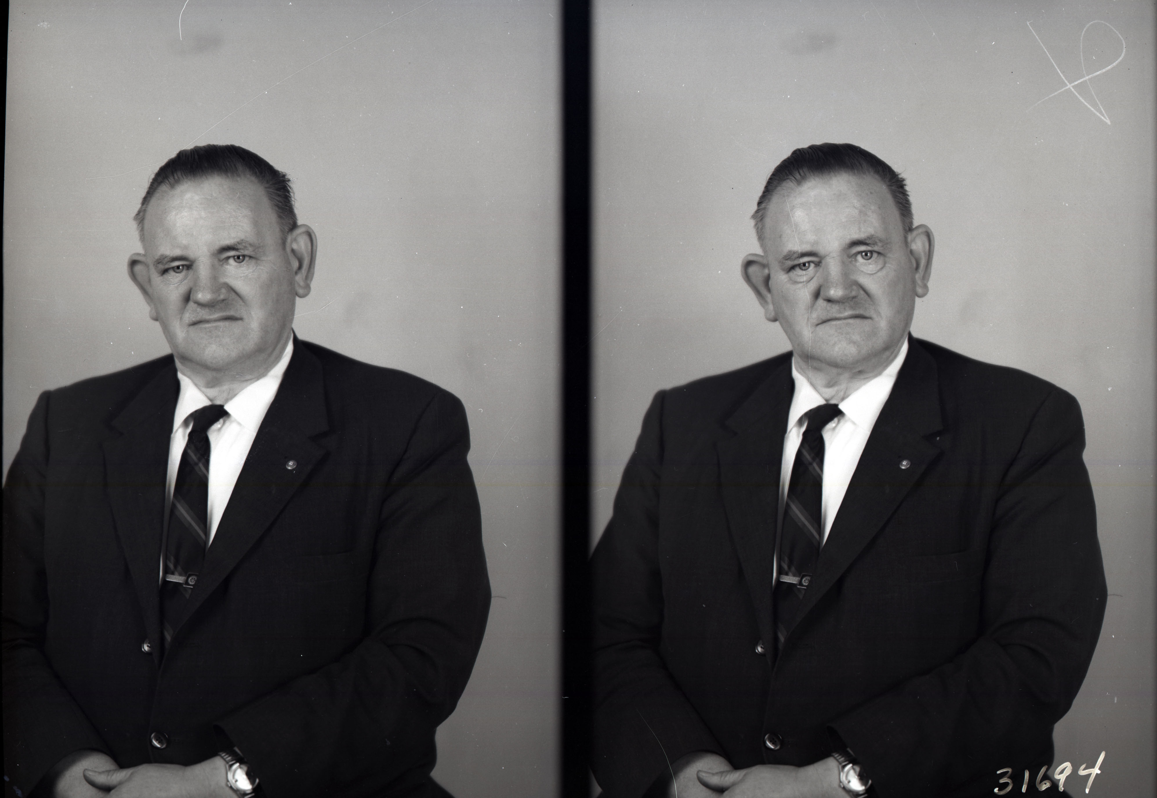Photo of two separate photographs of James Samuel Clower in his middle years wearing a suit and striped tie.