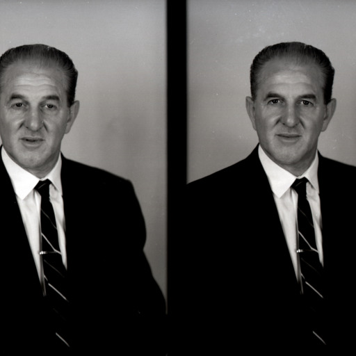 Photo of two separate portrait photographs of the same unidentified man wearing a suit and striped tie.