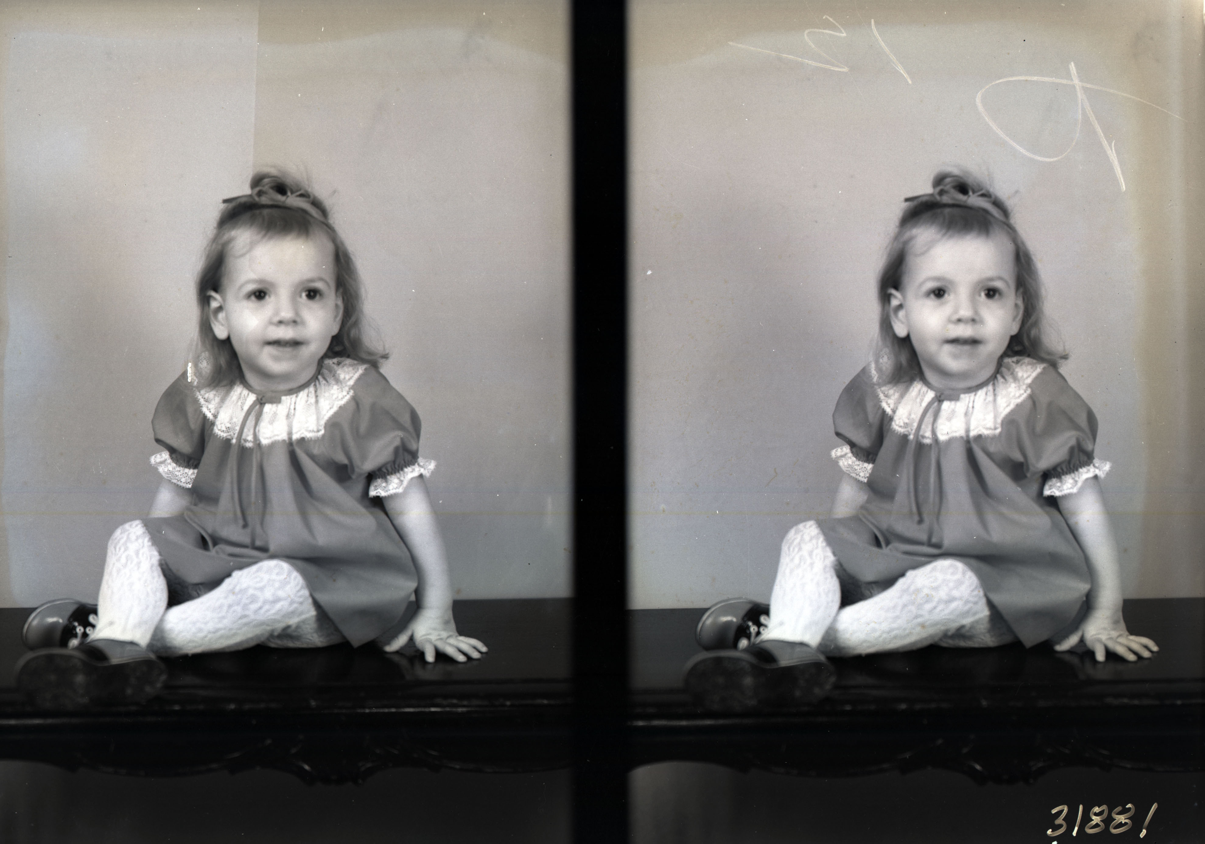 The image on the right has a mark at the top where the photographer noted which of the two images he planned to print.