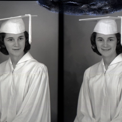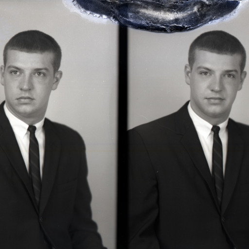 The image on the left has a mark at the top where the photographer noted which of the two images he planned to print.