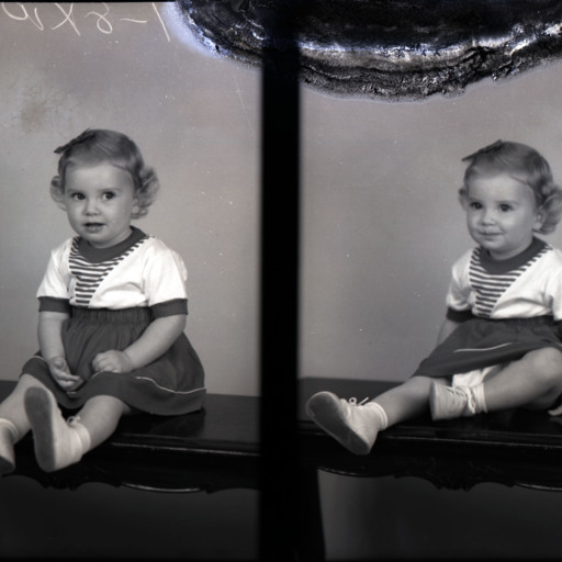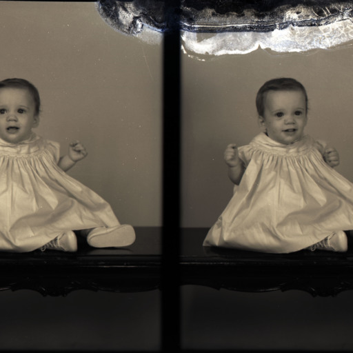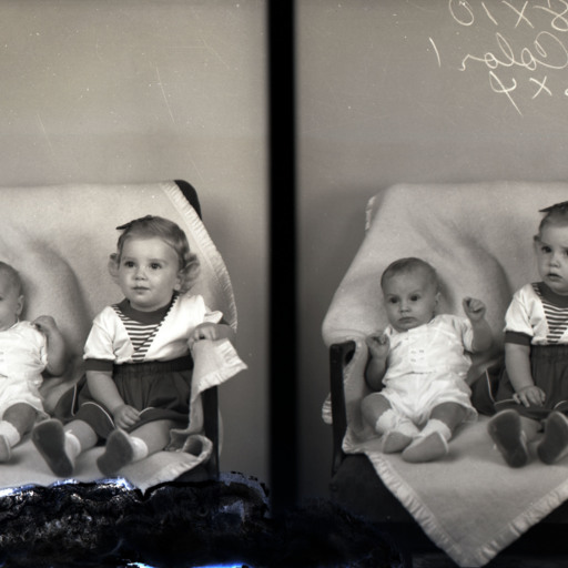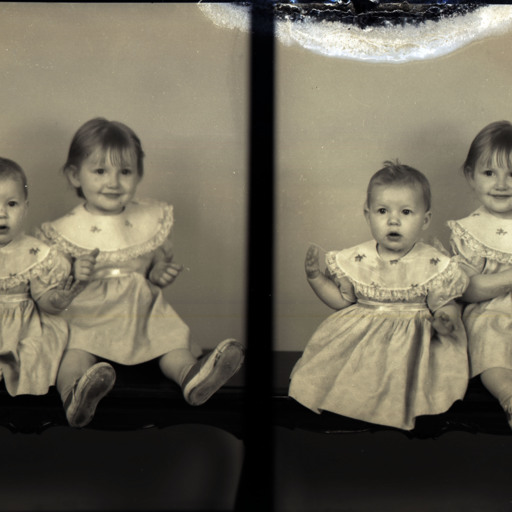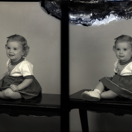 The image on the left has a mark at the top where the photographer noted which of the two images he…
