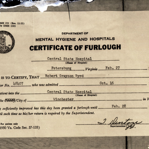Byrd had been admitted in 1961 from Winchester. He was required to return to the hospital on February 28,…