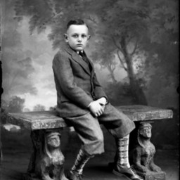 One child is a boy and the younger child is a girl. Both are wearing matching outfits.